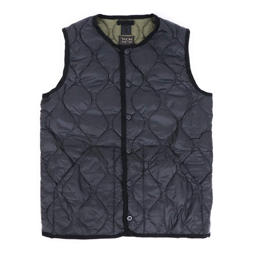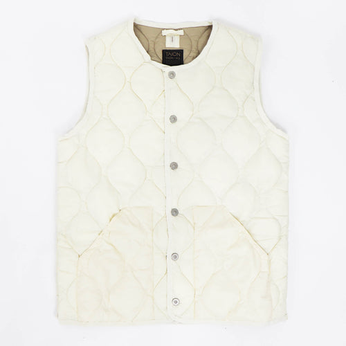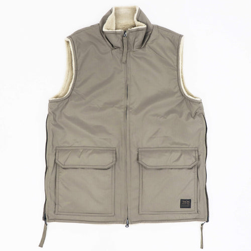TAION(タイオン)ミノンダウン ミリタリー リバーシブル ハイネック ボア ベスト【ライトモカ×ベージュ】国内正規品