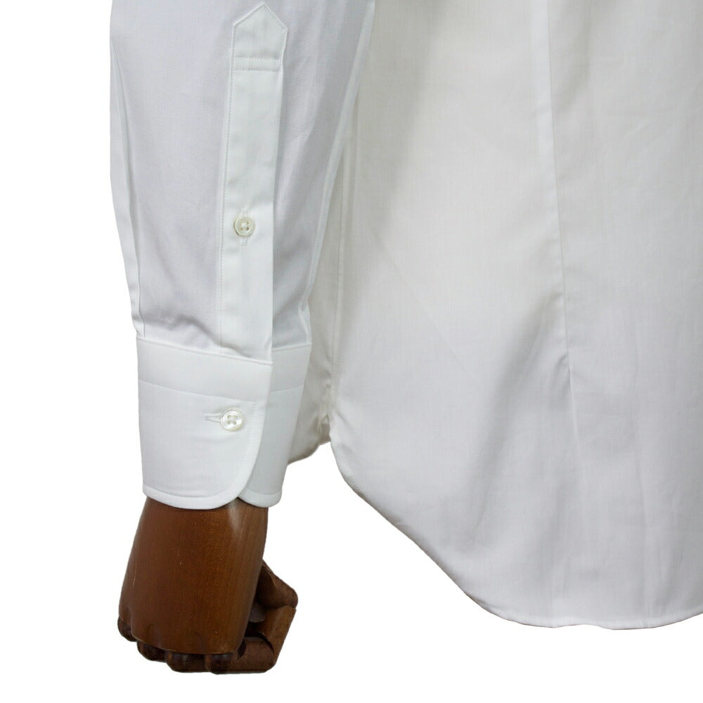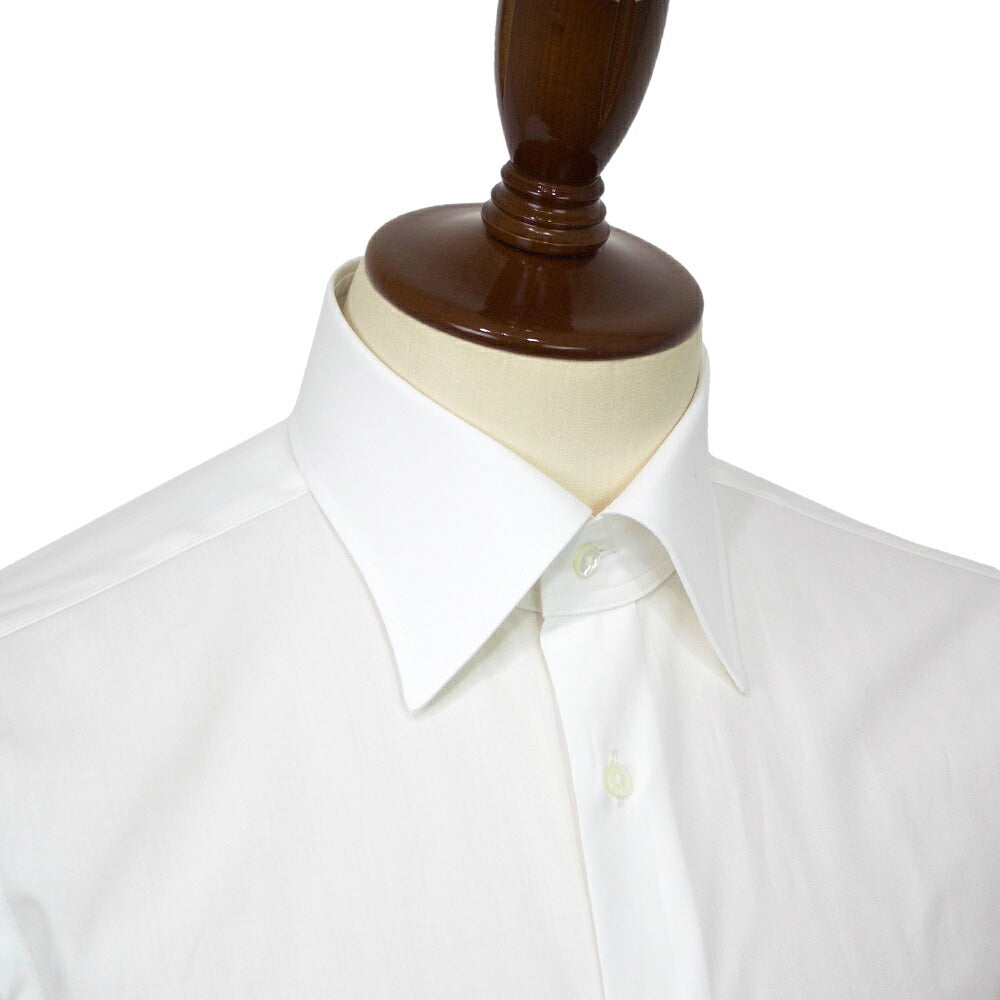 クラシック回帰のトレンドをふまえた襟は開きがやや狭いセミワイドカラーを採用しており、非常にエレガントで誠実な印象を与えてくれます。衿先までの長さが絶妙なのでジャケットを着用した際の襟の収まりが良くなるように計算されています。着用時のシルエットの美しさを追求したボディのラインは野暮ったさが一切ない仕上がりです。