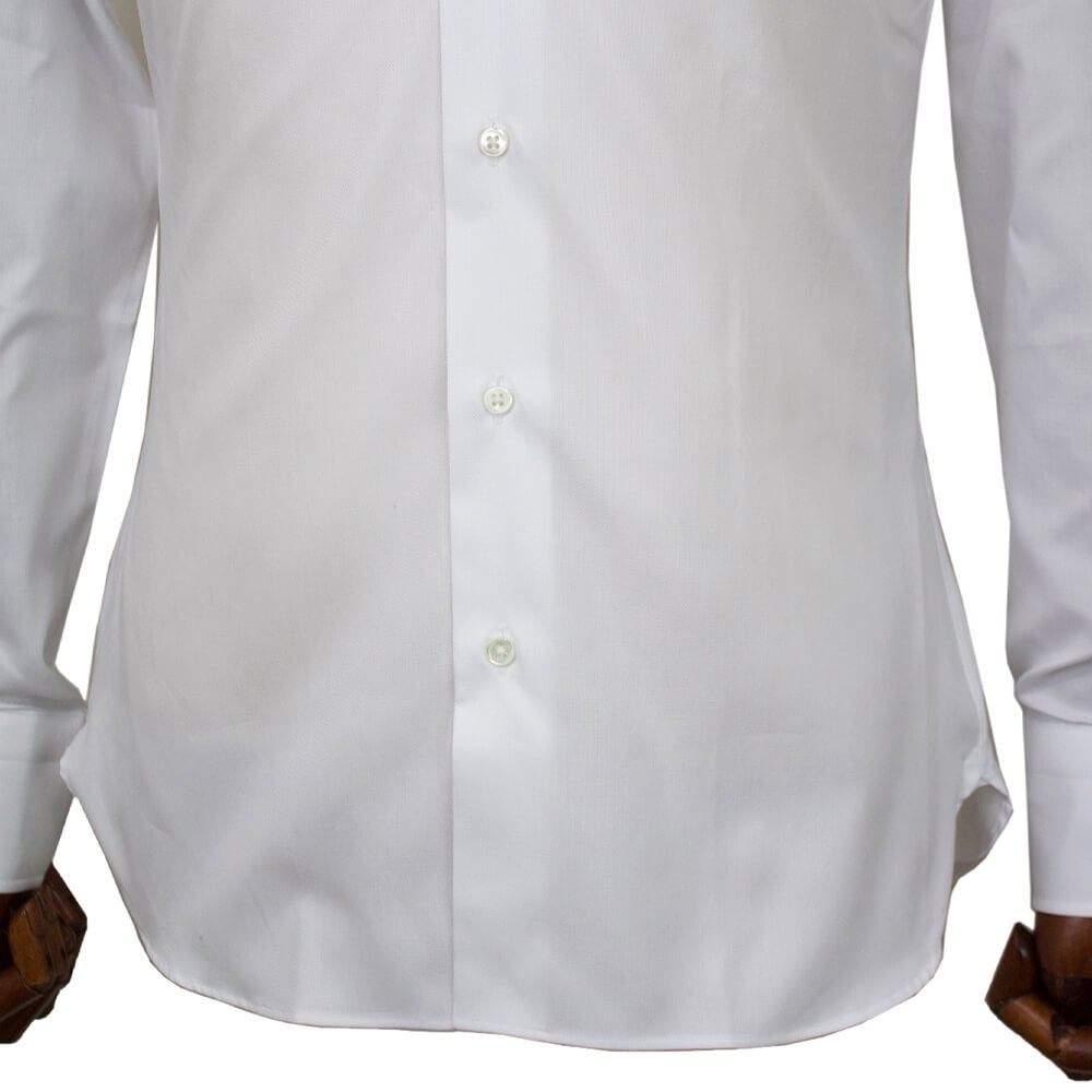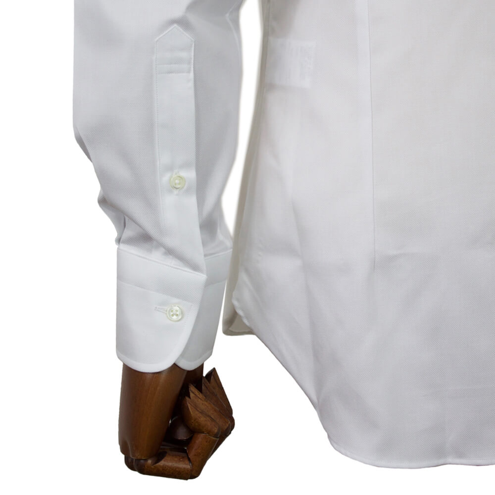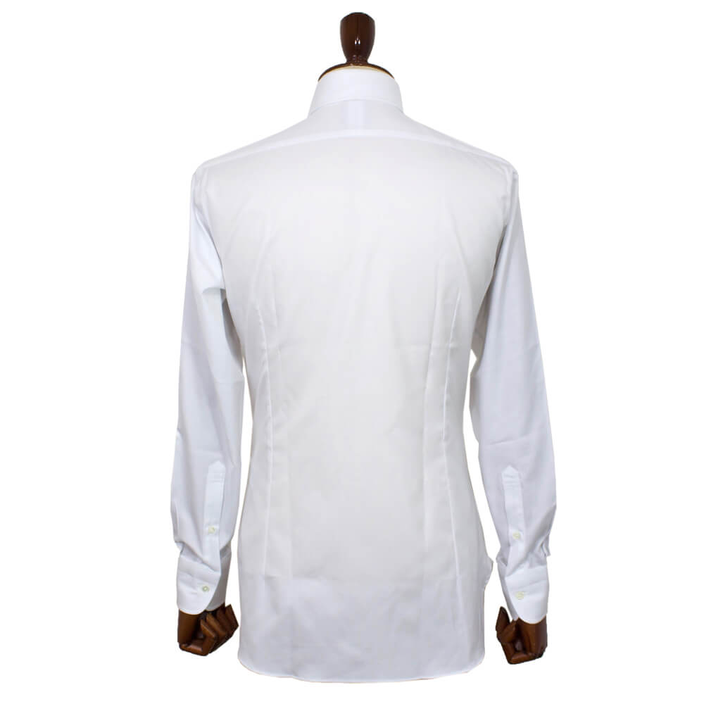 クラシック回帰のトレンドをふまえた襟は開きがやや狭いセミワイドカラーを採用しており、非常にエレガントで誠実な印象を与えてくれます。衿先までの長さが絶妙なのでジャケットを着用した際の襟の収まりが良くなるように計算されています。着用時のシルエットの美しさを追求したボディのラインは野暮ったさが一切ない仕上がりです。