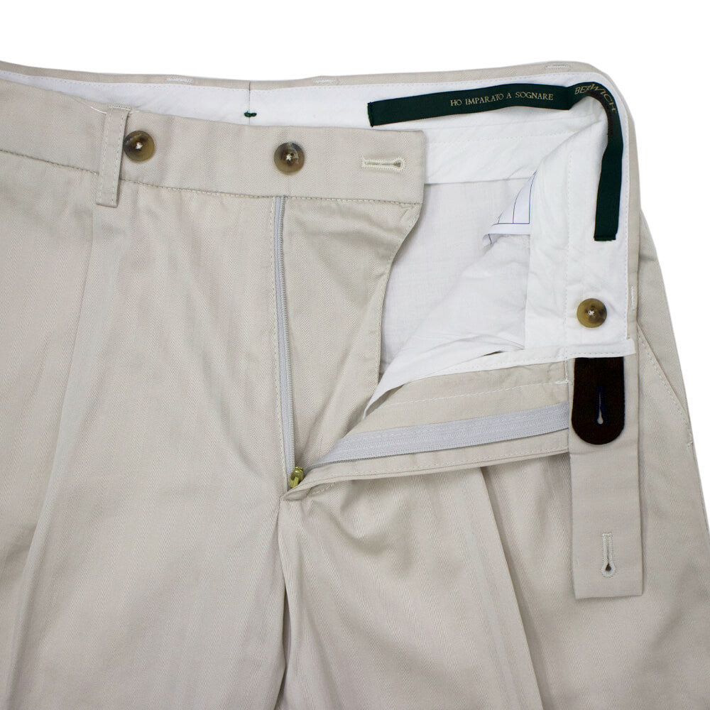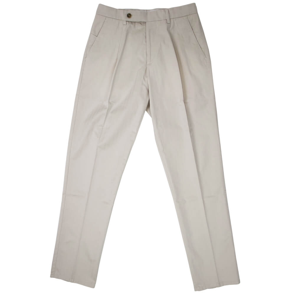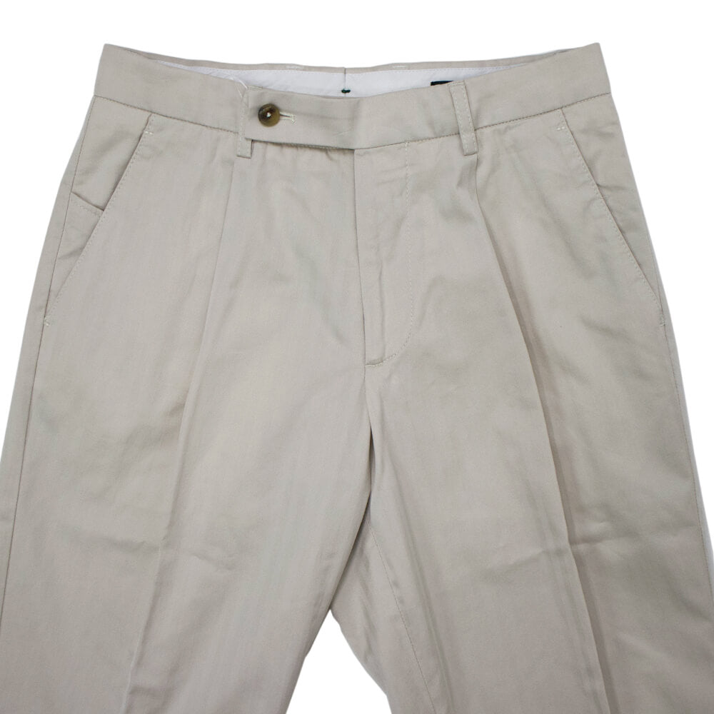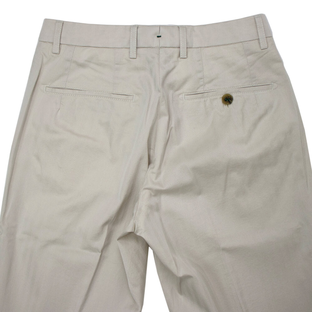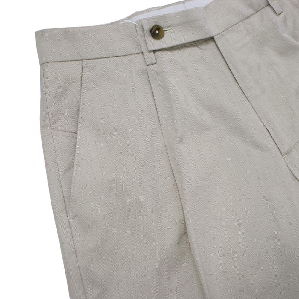 上質なコットンで仕立てたヘリンボーン 生地は、春夏シーズンらしい薄手の生地感。柔らかく滑らかさがありほんのりと英国の匂いを漂わせます。プリーツ入りのゆとりがある腰回りにしっかりとテーパードが効いたモダンなシルエット。 リラックス感がありながら、上品に仕上げたディテールがジャケットスタイルにも相性抜群。 カジュアルにもキレイめにも合せられる絶妙なバランスが魅力的なアイテムです。