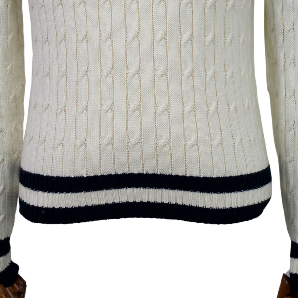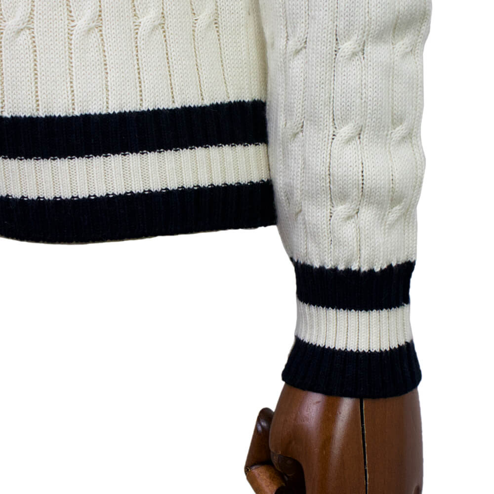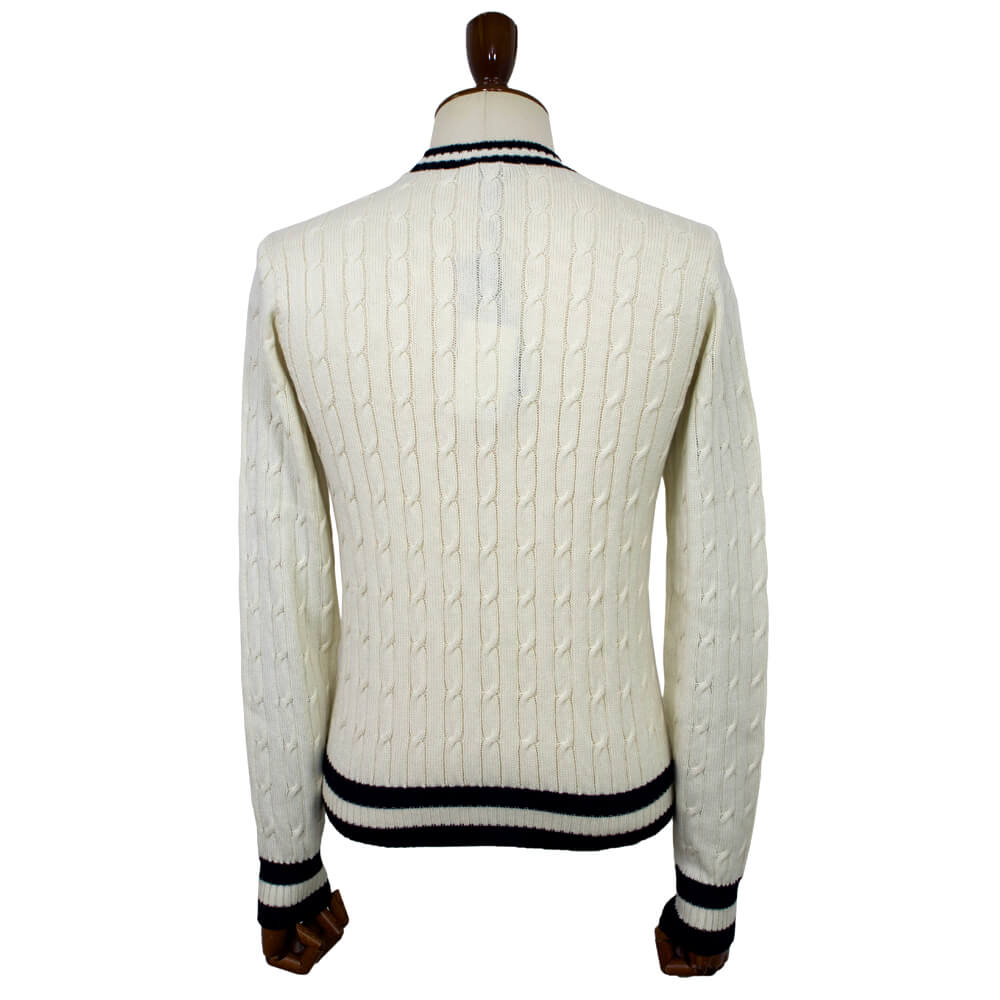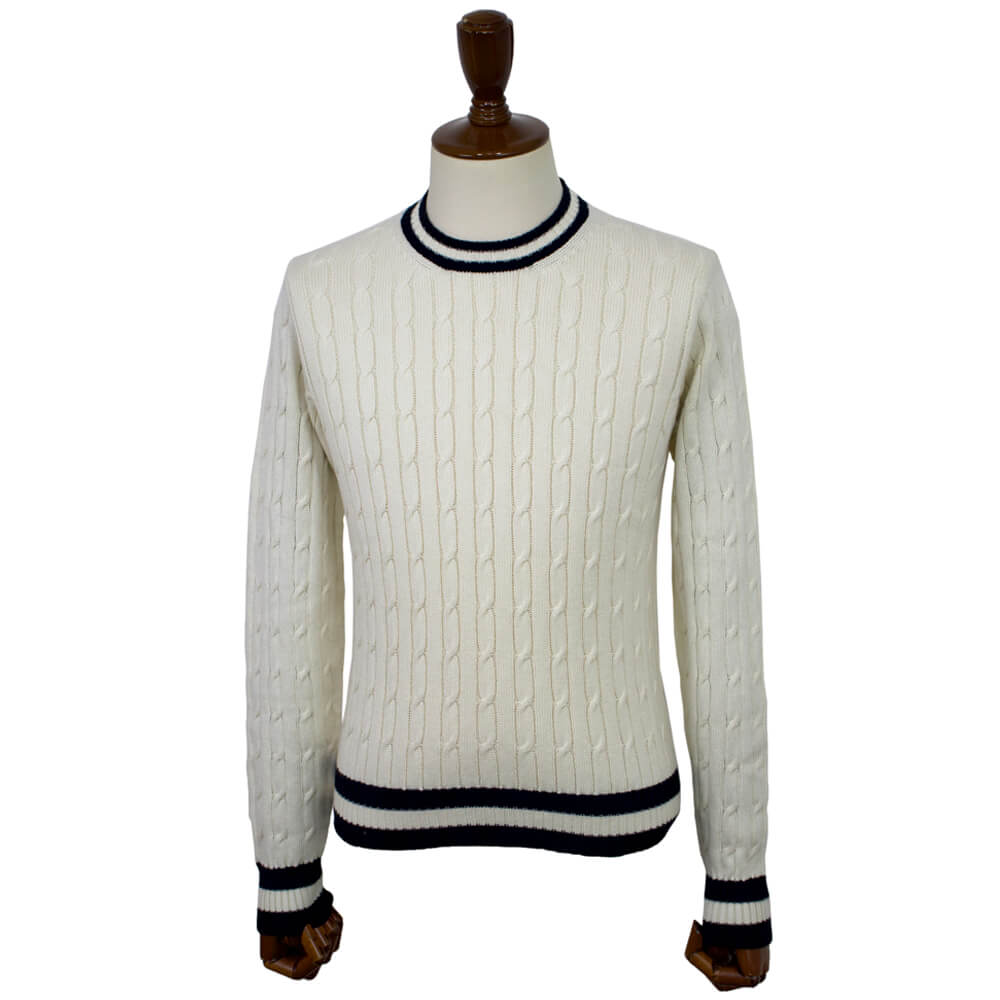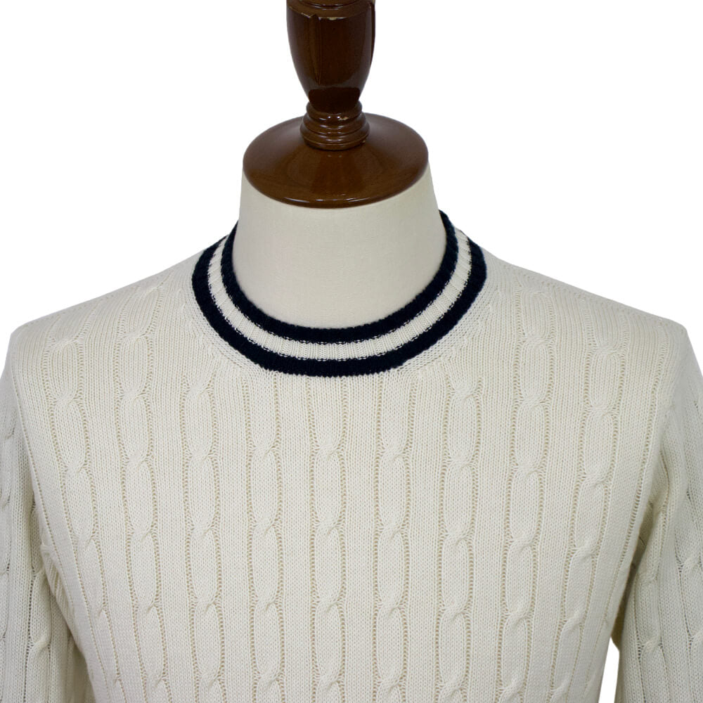 コットンカシミアを使用したケーブル編みのクルーネック ニットが入荷しました。