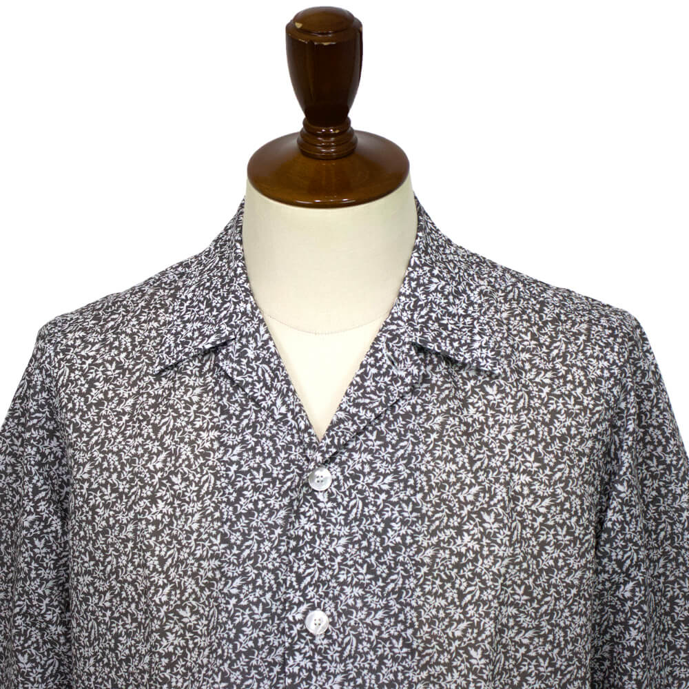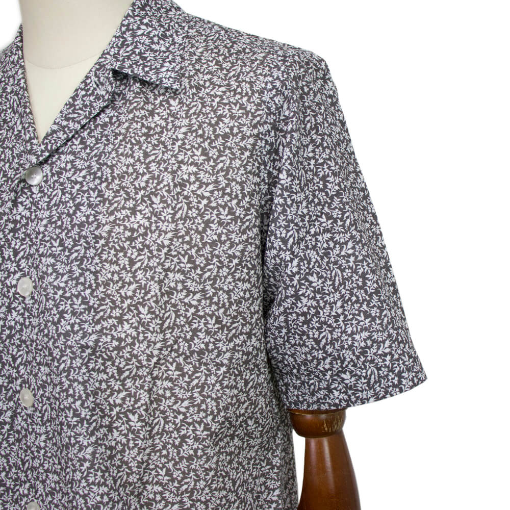 プラント柄の上質なコットン生地を使用し、柔らかく肌触りが良いナチュラルな風合いが魅力。通気性が良くさらっとした着心地の一着です。 ゆったりとしたボックスシルエットを採用し着丈が短めで気軽に羽織れるアイテム。開放感あるオープンカラーが上品なリラックスムードを演出する、大人のオフスタイルにおすすめの一枚。リラックスしつつもだらしなく見えない夏に間違いなく使えるアイテムです。単品でのトップスとしてはもちろん、Tシャツの上からの羽織りとしても役立つ一着です。