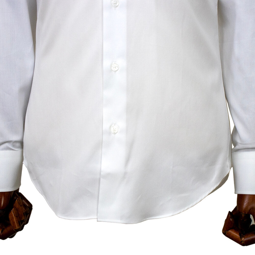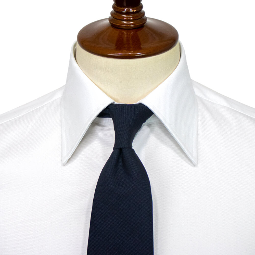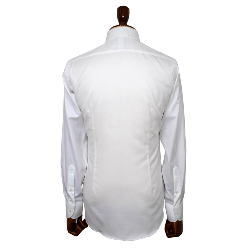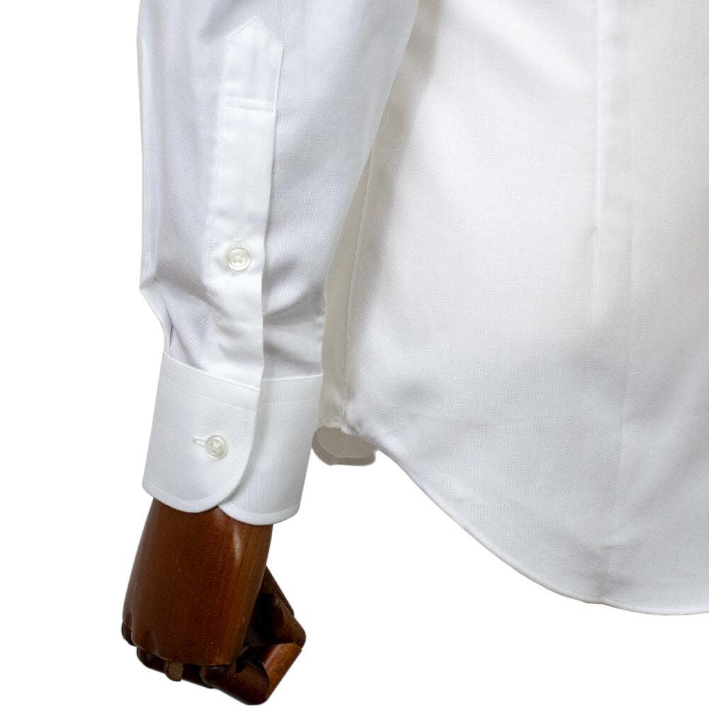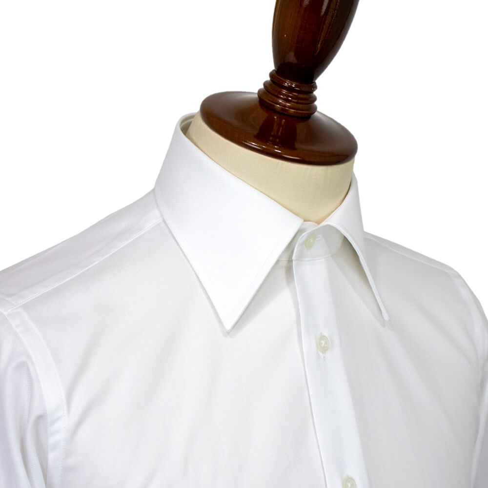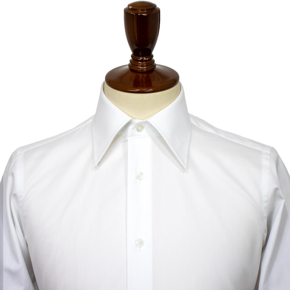 海外の有力ファブリックブランド『THOMAS MASON』のオックスフォード生地を使用し、しなやかな滑らかな肌触りと耐久性を兼ね備えた生地感が特徴の一着。クラシック回帰のトレンドをふまえた襟は開きがやや狭いワイドカラーを採用しており、非常にエレガントで誠実な印象を与えてくれます。衿先までの長さが絶妙なのでジャケットを着用した際の襟の収まりが良くなるように計算されています。着用時のシルエットの美しさを追求したボディのラインは野暮ったさが一切ない仕上がりです。