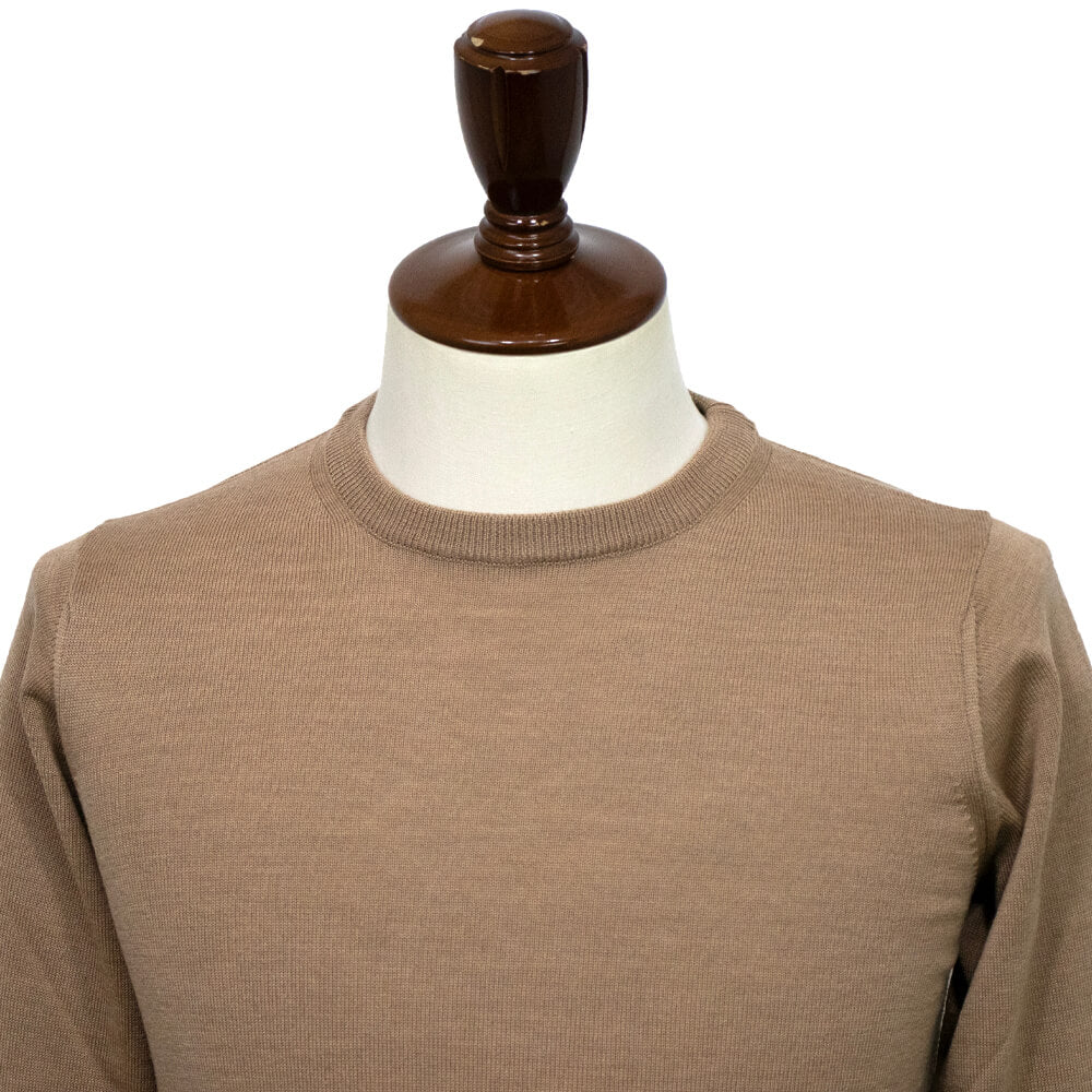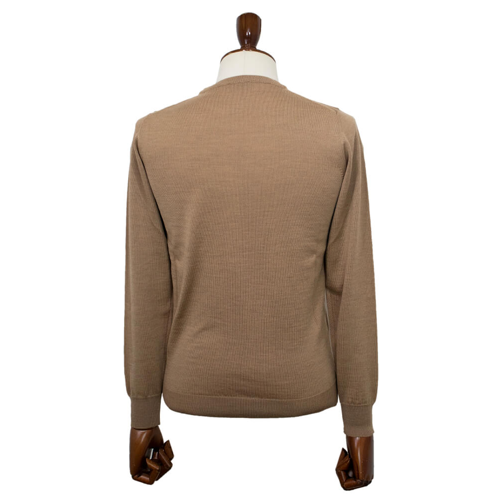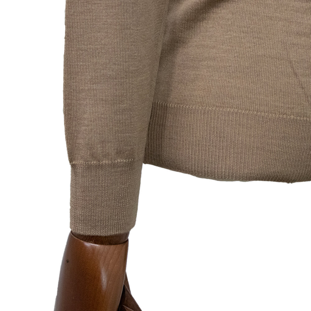 日本人向けに作られた細身のフィッティングになっており、肩まわりをコンパクトで袖丈や着丈など絶妙なバランスで細部までしっかり計算して作り込まれています。伸縮性のあるニット素材ながら袖や裾のリブはしっかりと詰まっており、永く使用しても伸びにくいのも嬉しいポイントです。とてもコストパフォーマンスがよく、上品な雰囲気でありながらカジュアル使いも出来る汎用性が魅力の一枚です!
