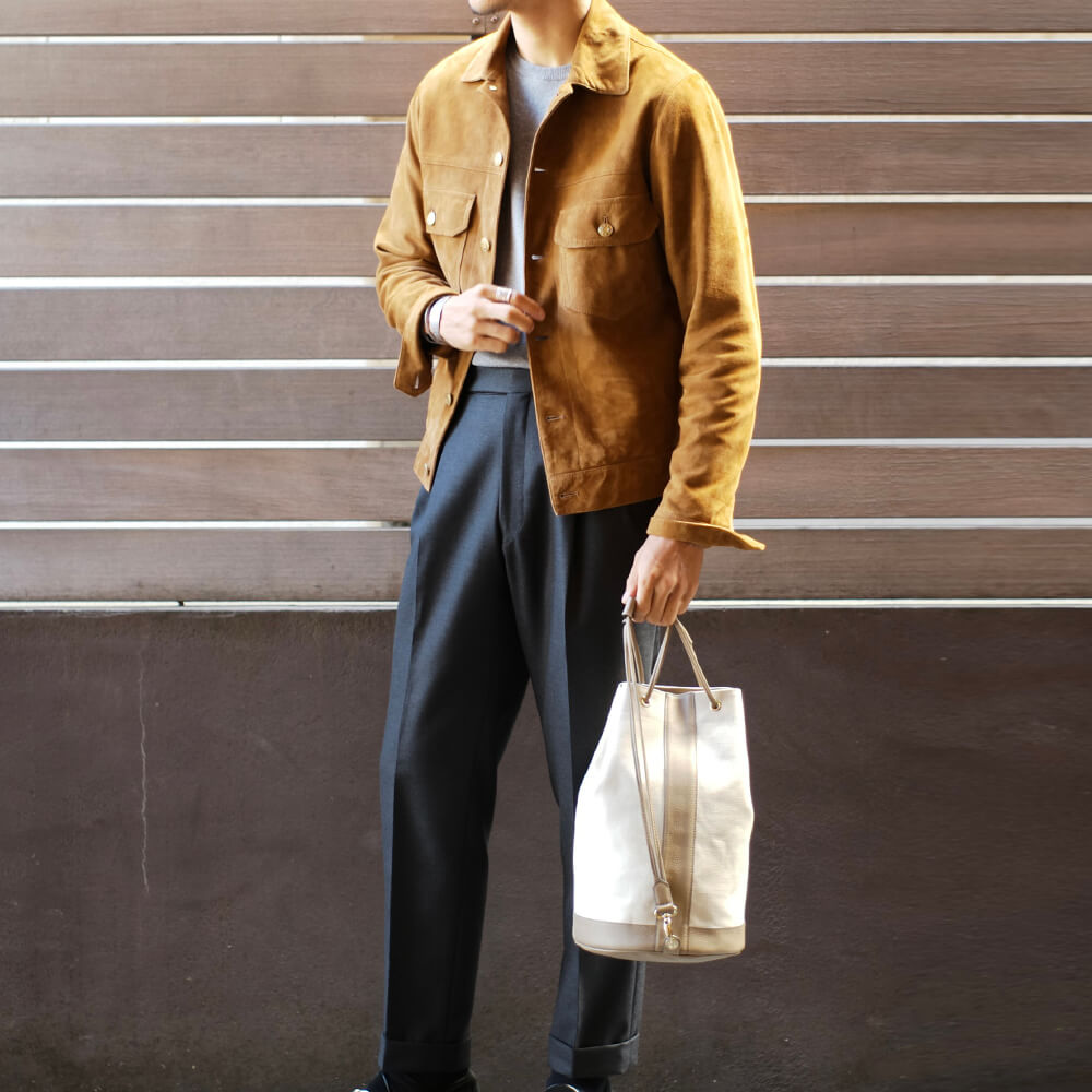カジュアル感がありながら上品で高級感も感じさせるワンショルダーバッグ。キャンバス×シュリンクレザーでCisei(シセイ)らしく上品な仕上がりになっています。使い勝手のいいサイズ感はデイリーユースの仕様には打って付けです。品の良さでカジュアルスタイルを格上げしてくれるBagです。