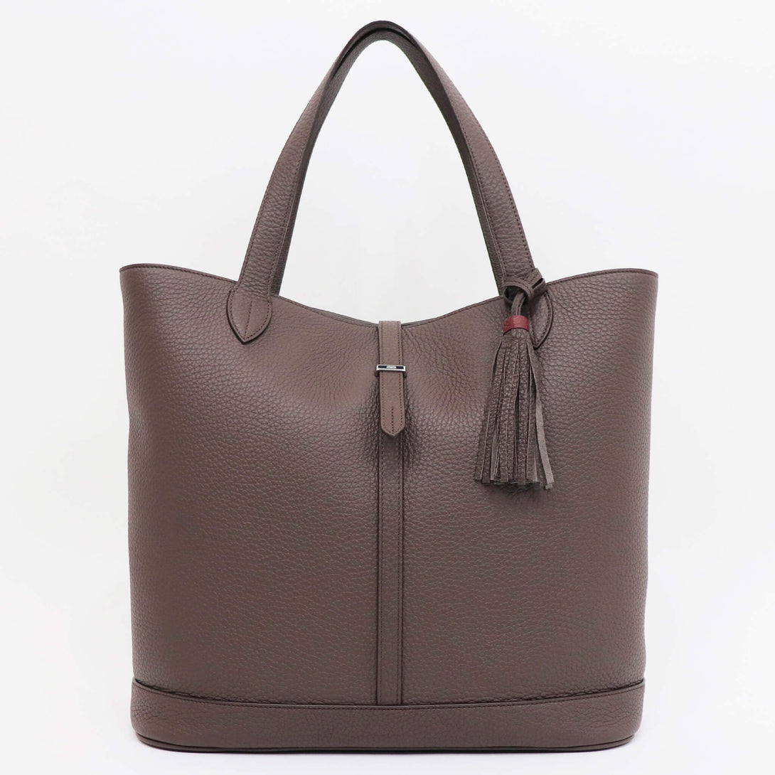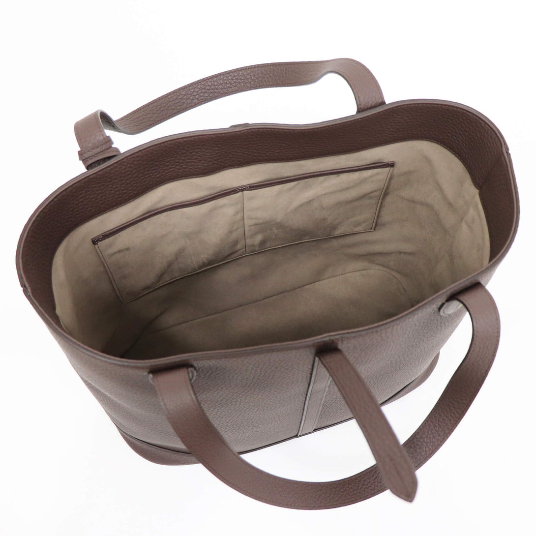 イタリア製の上質なシュリンクレザーで柔らかな洗練されたデザインを表現するモデル「KAUS」。シンプルなトートバッグでありながら、金具やタッセルが高級感を醸し出します。ファスナー付のインナーポケットなどもあり、ビジネスシーンにも対応します。2024SSシーズンよりデザインのマイナーチェンジを行い、より高級感とデザイン性を向上させました。