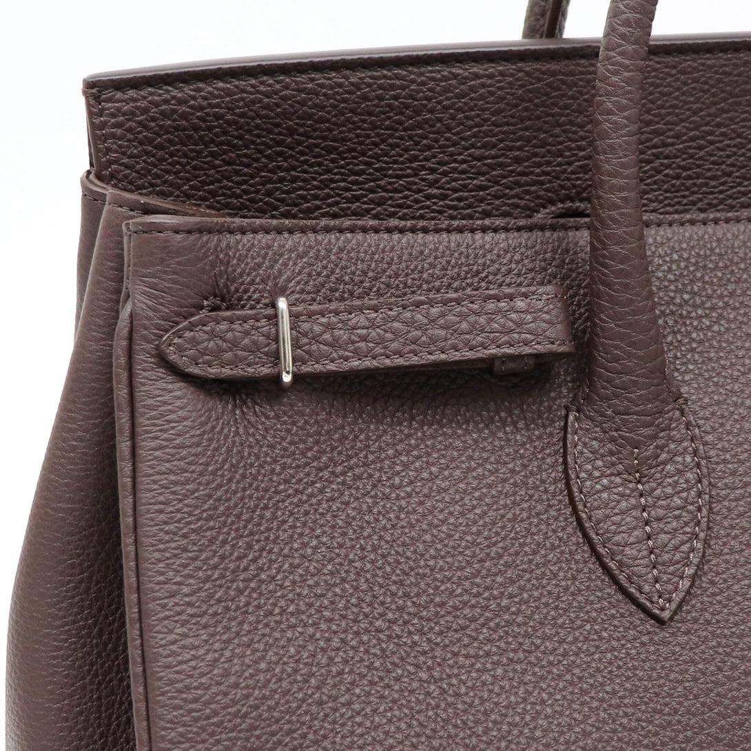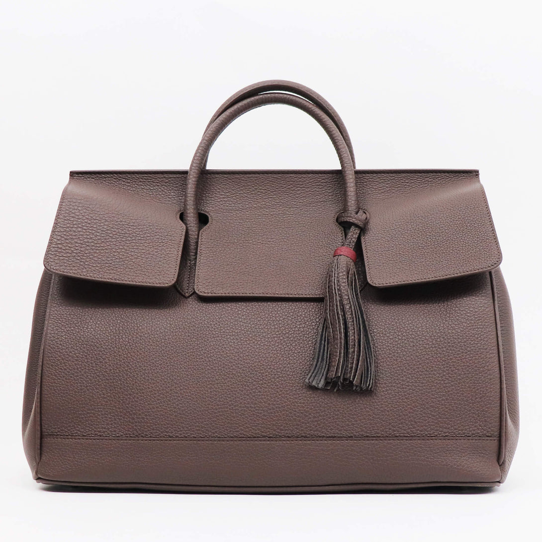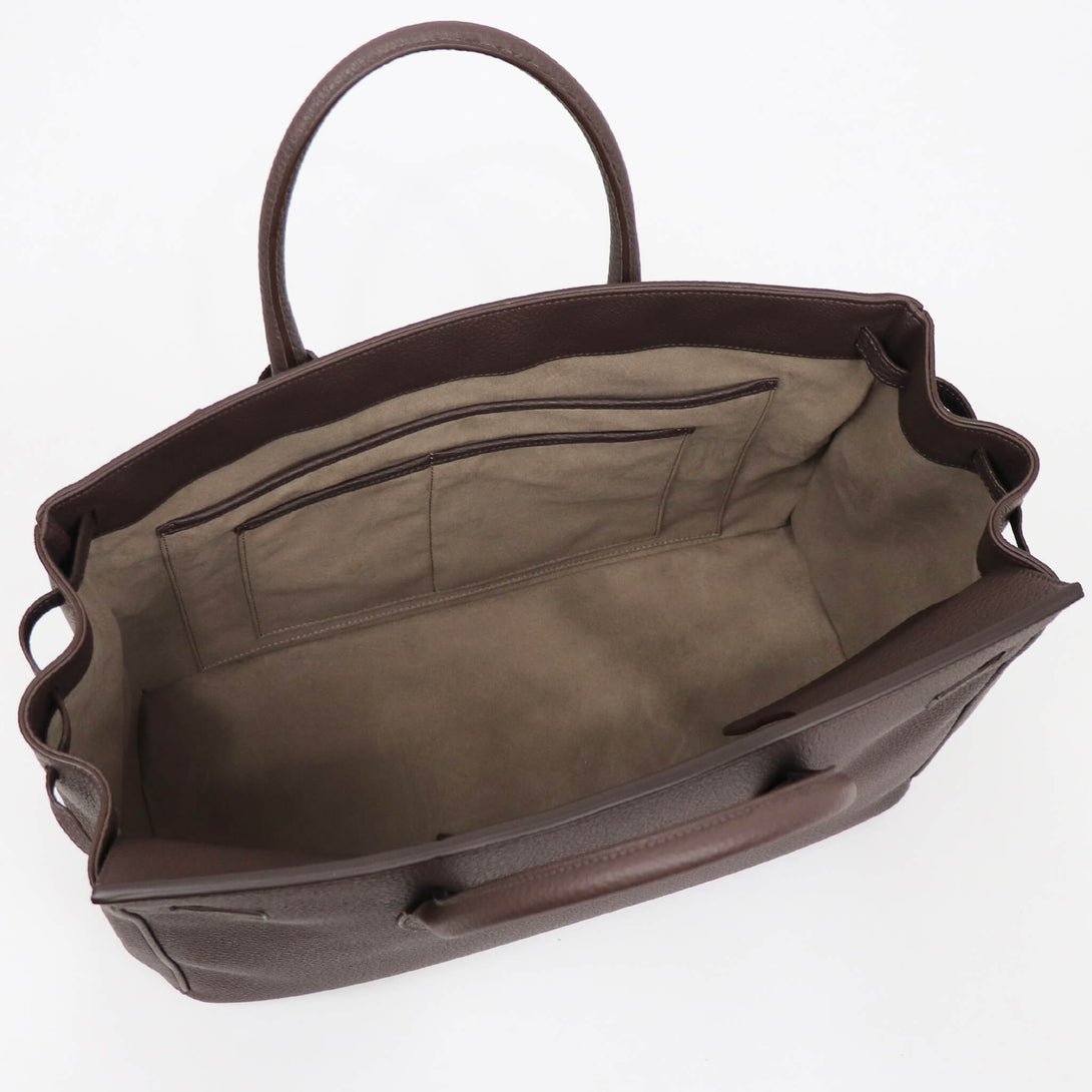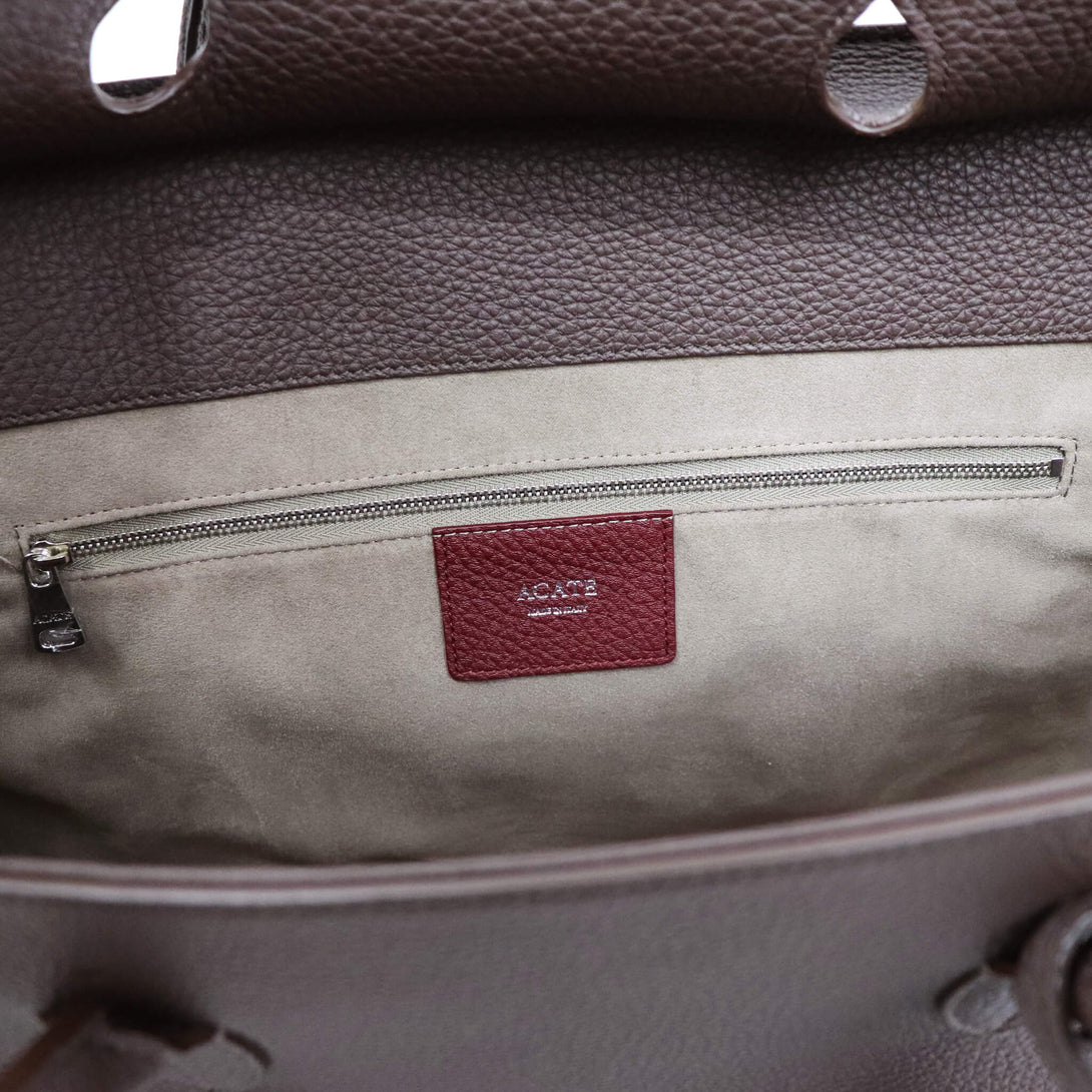 イタリア製の高品質なシュリンクレザーを用いているので、上質感と柔らかな風合いがシンプルなデザインとマッチし、堅実なスタイリングを実現します。ファスナー付きのインナポケットなどもあり、ビジネスシーンにも対応します。