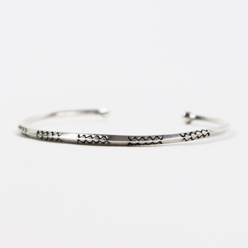 一つ一つ手彫りで丁寧に彫られた表面の美しい文様には、それぞれ意味があり、事物、物語、寓意などを象徴しています。決してボリュームのあるブレスレットではありませんが、面一杯に彫られた文様が贅沢な存在感を演出してくれるAdawat'n Tuareg/アダワット・トゥアレグらしい作品です。細かく彫られた文様は存在感があり、コーディネートのアクセントとしてご使用頂けます。