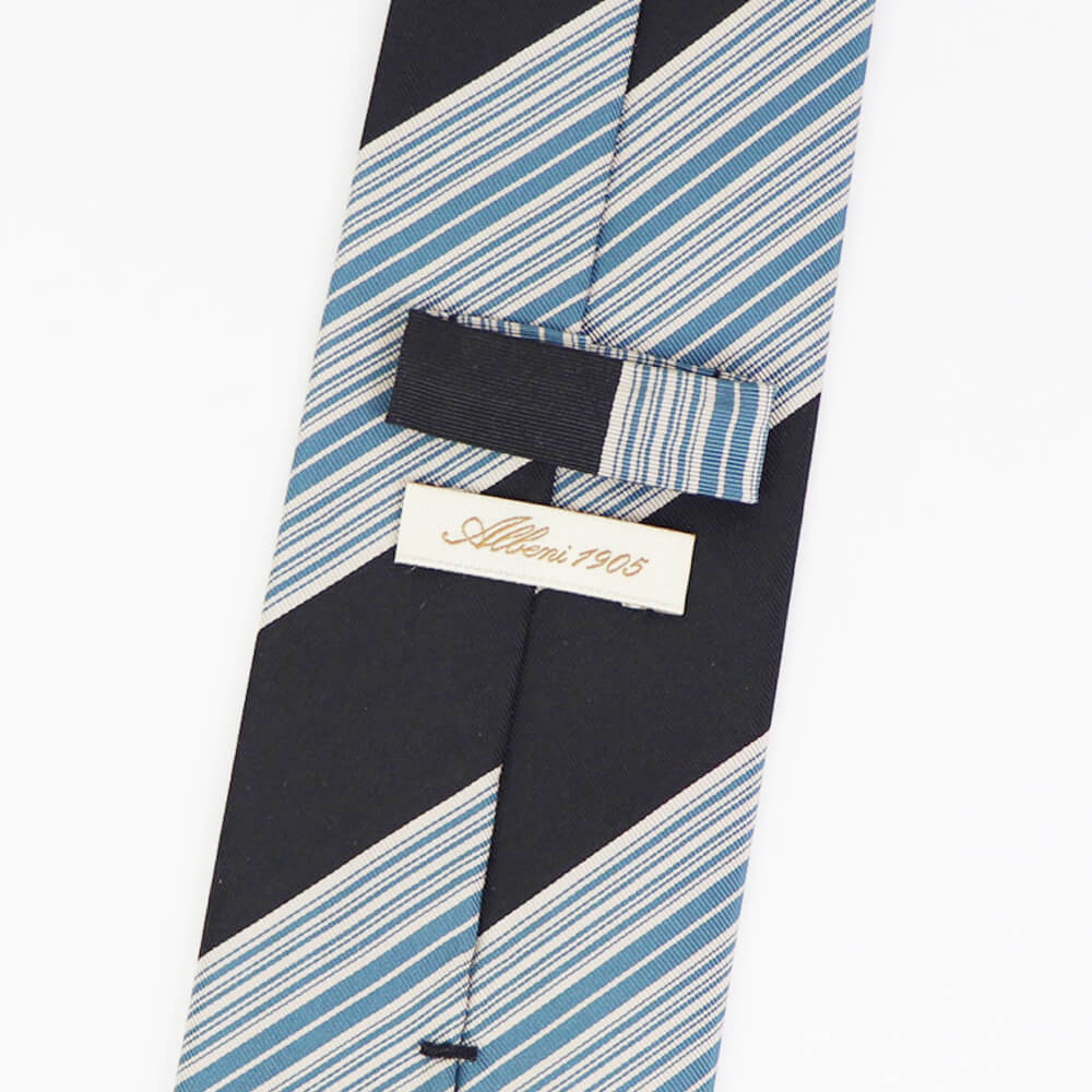 “ALBENI 1905” は、1905 年にミラノ近郊のガッララーテでピエトロ・アルベニによって創設された老舗メーカーです。創業よりタイ用芯地類のスペシャリストとして知られ、近年は有名ブランドへのOEMとオリジナルブランド “アルベニ 1905” で高品質ハンドメイドタイを供給。国内外での評価を上げてきました。コモ、ビエラ産の上質な生地を使い、ハンドワークで1本ずつ仕上げられており、滑らかな質感、しっかりとした締め心地が特徴的です。