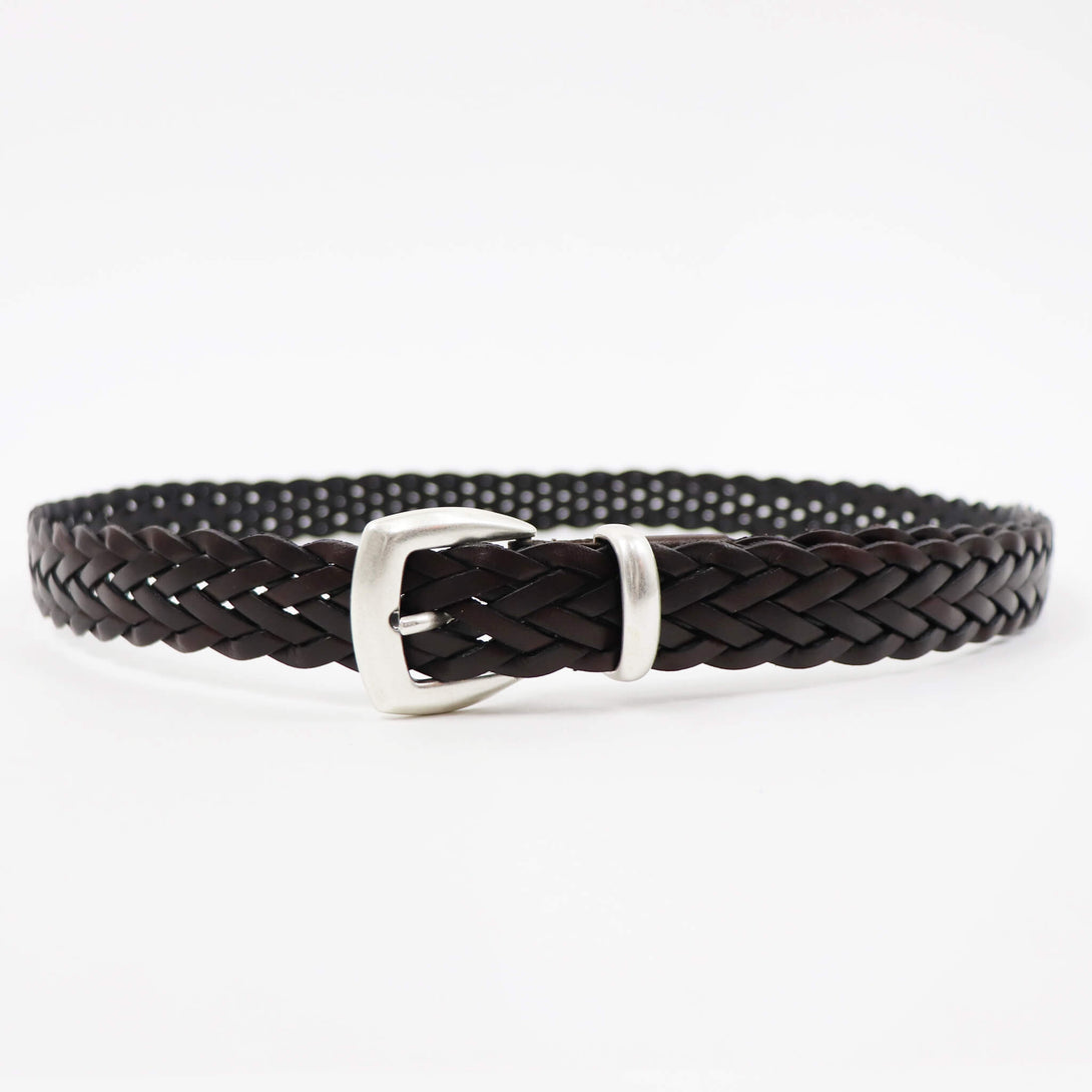 今季セレクトしたのは、編み込みの表革とスエードの優しい質感が特徴のメッシュベルトになります。細かいサイズ調整が出来る実用的なベルトになりますが、アルベルト ルティのメッシュベルトは編み込みが非常にしっかり目が詰まっている事で、上品な雰囲気を作り出してくれるベルトに仕上がっております。スエードのタイプは裏面を化繊でコーティングすることで、ベルトを着用した際に、パンツにこすれてベルトが削れてしまったりする事を軽減する仕様となっています。また、ベルト幅が2.5㎝のスッキリとした設計となります。