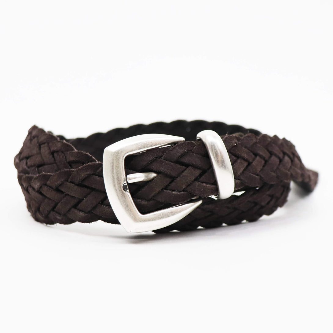 今季セレクトしたのは、編み込みの表革とスエードの優しい質感が特徴のメッシュベルトになります。細かいサイズ調整が出来る実用的なベルトになりますが、アルベルト ルティのメッシュベルトは編み込みが非常にしっかり目が詰まっている事で、上品な雰囲気を作り出してくれるベルトに仕上がっております。スエードのタイプは裏面を化繊でコーティングすることで、ベルトを着用した際に、パンツにこすれてベルトが削れてしまったりする事を軽減する仕様となっています。また、ベルト幅が2.5㎝のスッキリとした設計となります。