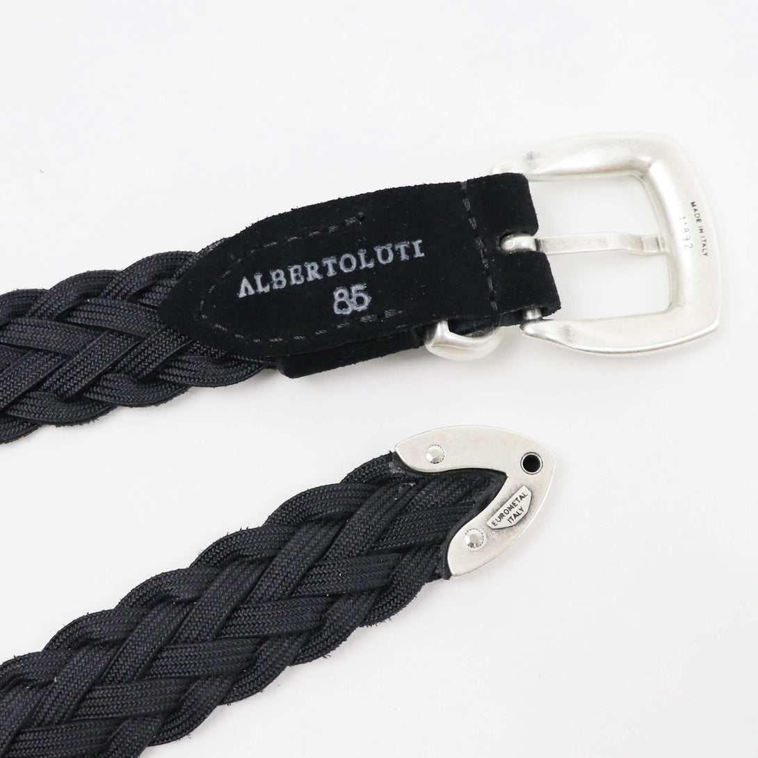 今季セレクトしたのは、編み込みの表革とスエードの優しい質感が特徴のメッシュベルトになります。細かいサイズ調整が出来る実用的なベルトになりますが、アルベルト ルティのメッシュベルトは編み込みが非常にしっかり目が詰まっている事で、上品な雰囲気を作り出してくれるベルトに仕上がっております。スエードのタイプは裏面を化繊でコーティングすることで、ベルトを着用した際に、パンツにこすれてベルトが削れてしまったりする事を軽減する仕様となっています。また、ベルト幅が2.5㎝のスッキリとした設計となります。