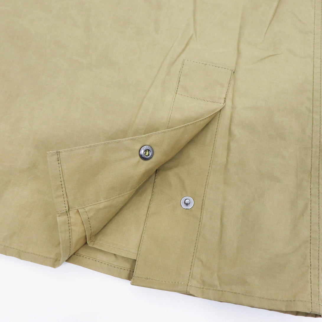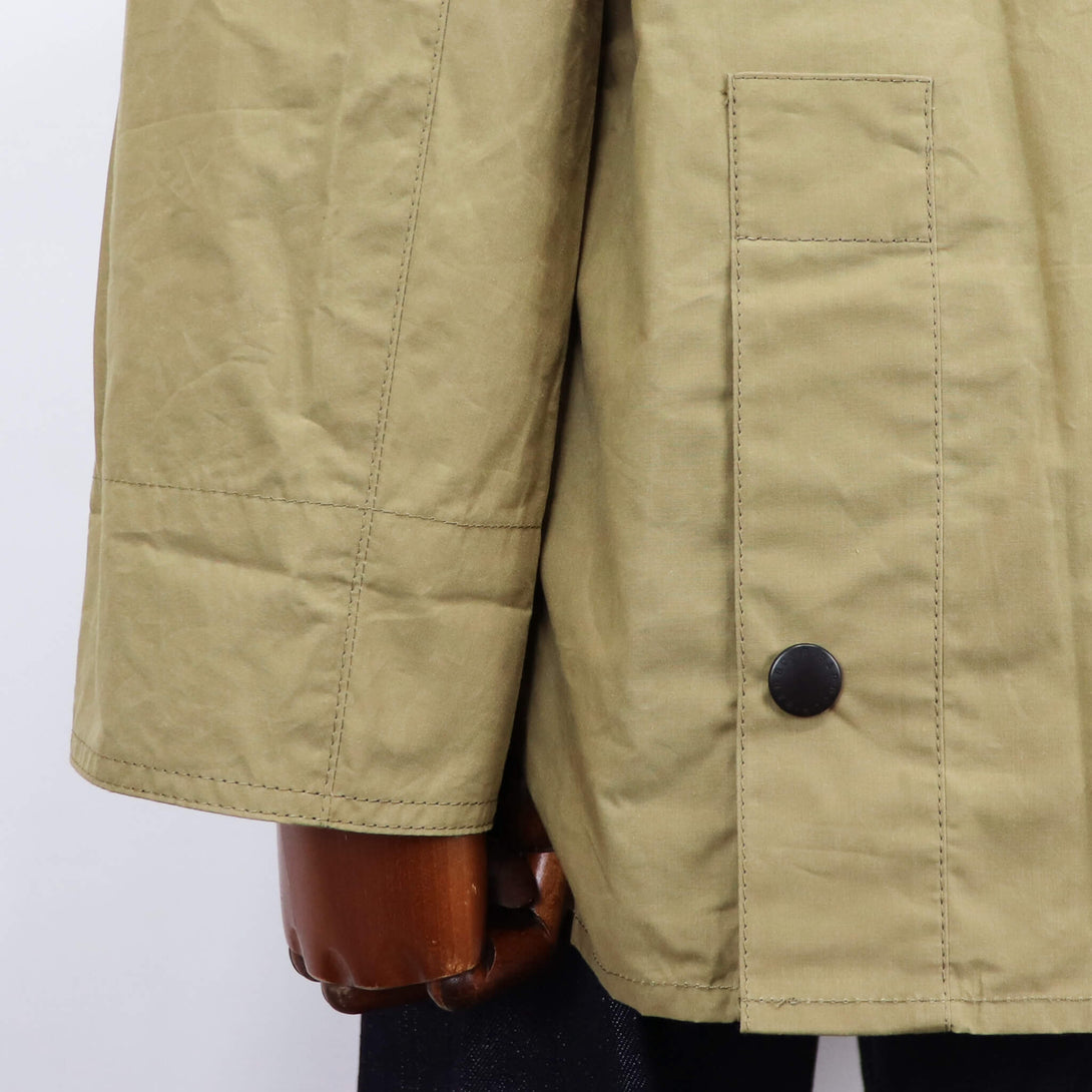 本作はシーズンレスで着用可能なオイルドコットンモデル。通常のオイルドタイプよりも、ライトなオイルドとなっていますので、しっとりとした風合いで上品な雰囲気を醸し出してくれます。