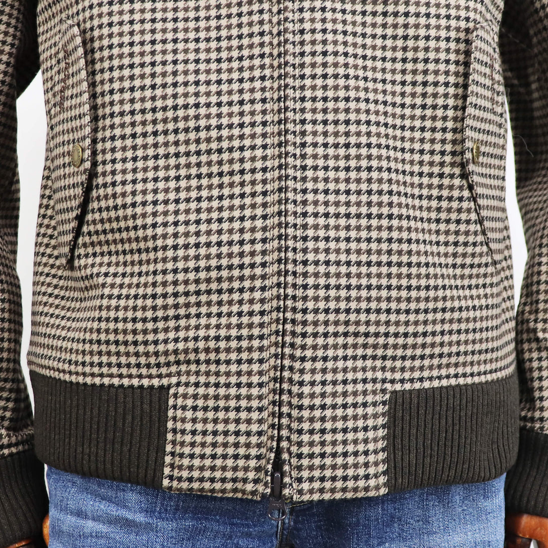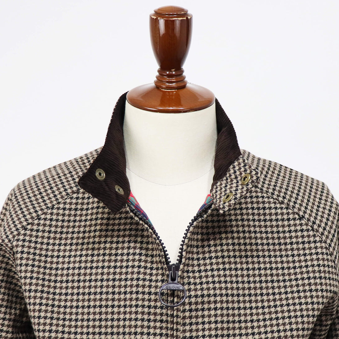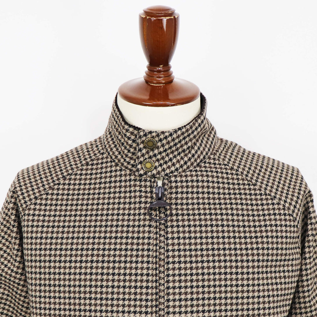 ブラウンの千鳥格子がバブアーらしい土臭さがあり、バラクータと見事にマッチした一着です。両ブランドのアイコニックなチェックも見事に調和されています。またZIPの引き手がBarbourというのもポイント。貴重な一着になること間違いなしです。