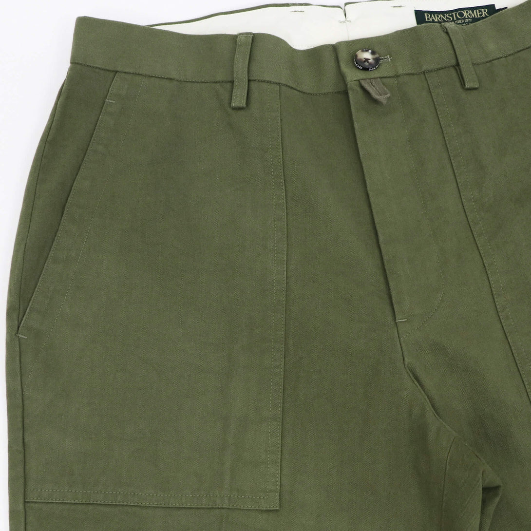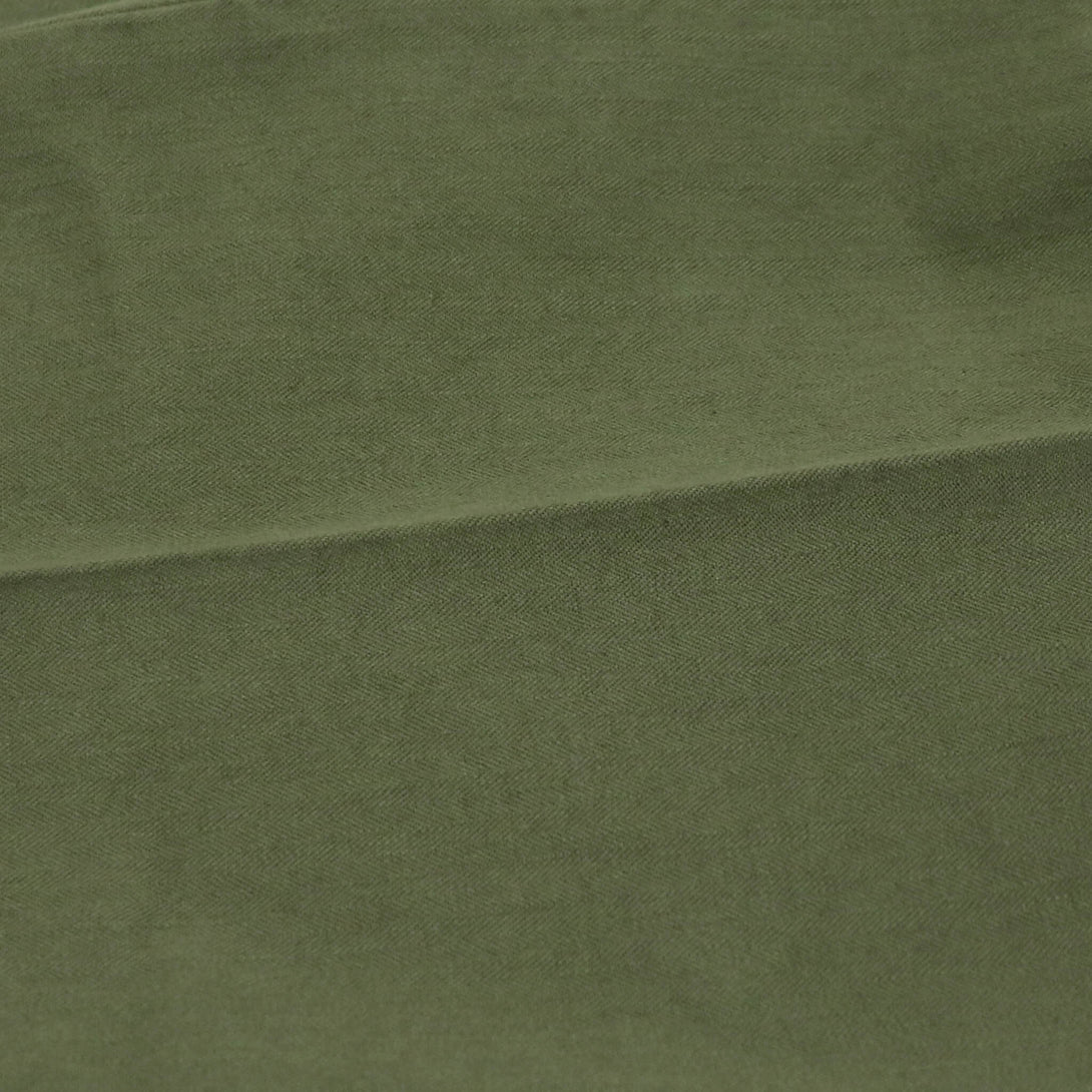 打ち込みの強いヘリンボーン生地をのせる事により本来のファティーグパンツの雰囲気はそのままドレスパンツへと昇華されています。このハイブリッド的な大人パンツ、綺麗めなアイテムとの相性抜群です。