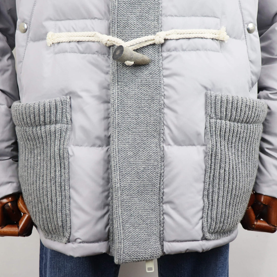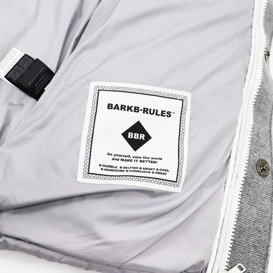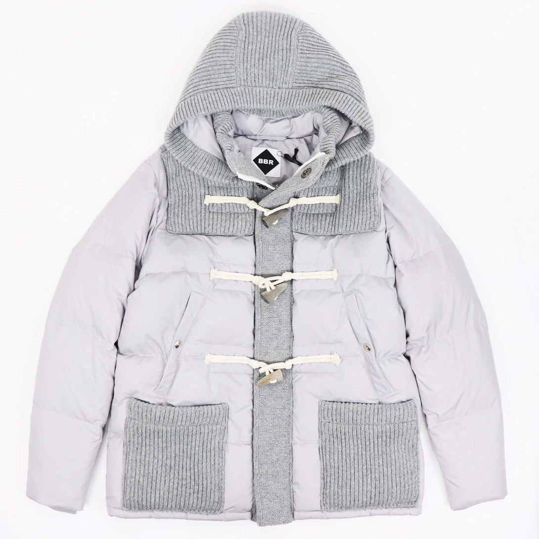 ニットダッフルコートで一世を風靡したBARKのフィロソフィーを継承しつつ更にストリート感覚を追求した新ブランド「BBR」が2022年秋冬より日本限定販売を始めました。ファーストシーズンに続き、ショート丈のダッフルダウンをリリース。BARKらしさを残しつつ、今の時代にマッチさせたニットとダウンのコンビで、高級ダウン素材(ダウン80/フェザー20)を増やすことで軽量化し、特徴的な部分使いニットとのデザインバランスでモダンな仕上がりになっています。スーツ、ジャケットのアウターとして、またカジュアルな着こなしのアウターとして、あらゆるシーンに対応可能な万能なダウンとなっています。トグル部分は天然水牛の角を使用している為、一点ずつ模様が違いますので予めご了承ください。
