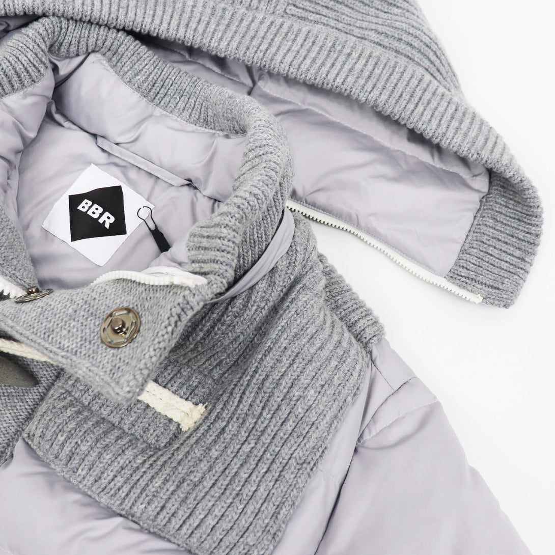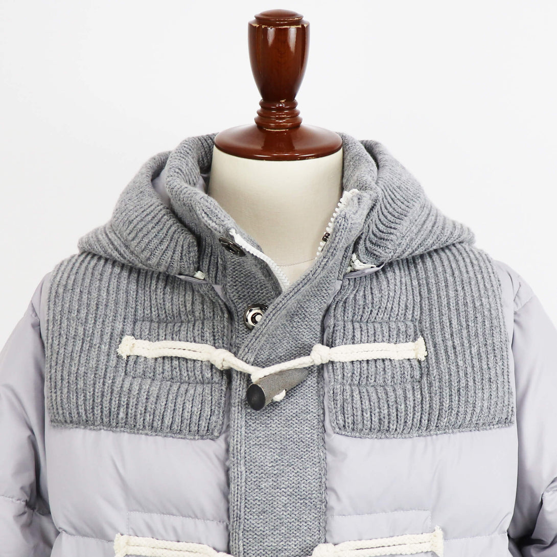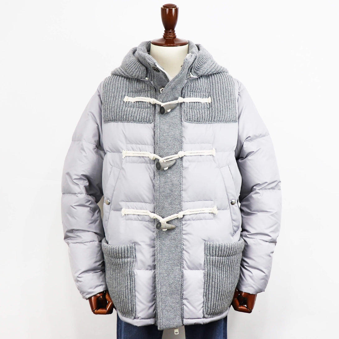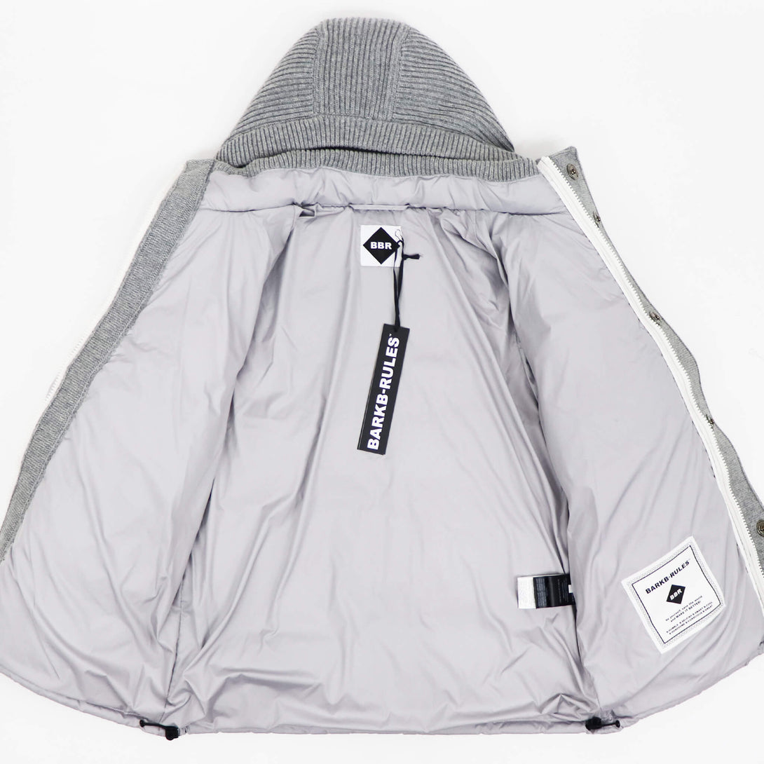 ニットダッフルコートで一世を風靡したBARKのフィロソフィーを継承しつつ更にストリート感覚を追求した新ブランド「BBR」が2022年秋冬より日本限定販売を始めました。ファーストシーズンに続き、ショート丈のダッフルダウンをリリース。BARKらしさを残しつつ、今の時代にマッチさせたニットとダウンのコンビで、高級ダウン素材(ダウン80/フェザー20)を増やすことで軽量化し、特徴的な部分使いニットとのデザインバランスでモダンな仕上がりになっています。スーツ、ジャケットのアウターとして、またカジュアルな着こなしのアウターとして、あらゆるシーンに対応可能な万能なダウンとなっています。トグル部分は天然水牛の角を使用している為、一点ずつ模様が違いますので予めご了承ください。