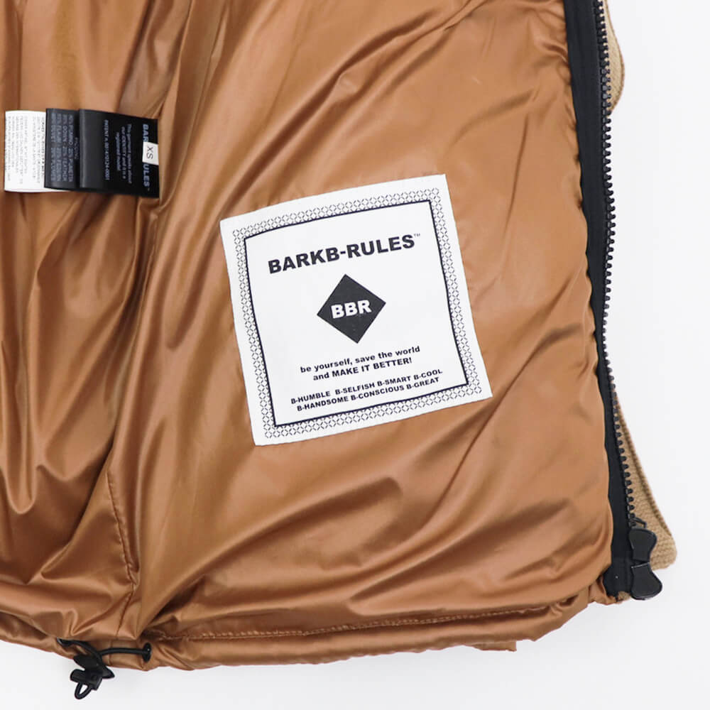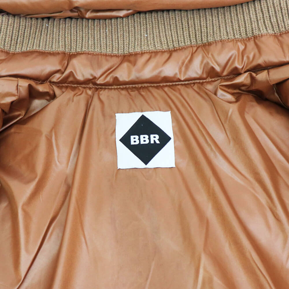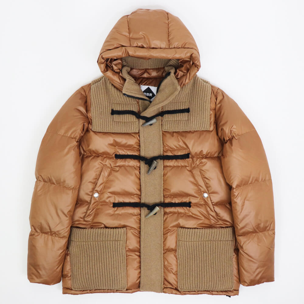 ニットダッフルコートで一世を風靡したBARKのフィロソフィーを継承しつつ更にストリート感覚を追求した新ブランド「BBR」が2022年秋冬より日本限定販売を始めました。ファーストシーズンに続き、ショート丈のダッフルダウンをリリース。BARKらしさを残しつつ、今の時代にマッチさせたニットとダウンのコンビで、高級ダウン素材(ダウン80/フェザー20)を増やすことで軽量化し、特徴的な部分使いニットとのデザインバランスでモダンな仕上がりになっています。スーツ、ジャケットのアウターとして、またカジュアルな着こなしのアウターとして、あらゆるシーンに対応可能な万能なダウンとなっています。トグル部分は天然水牛の角を使用している為、一点ずつ模様が違いますので予めご了承ください。