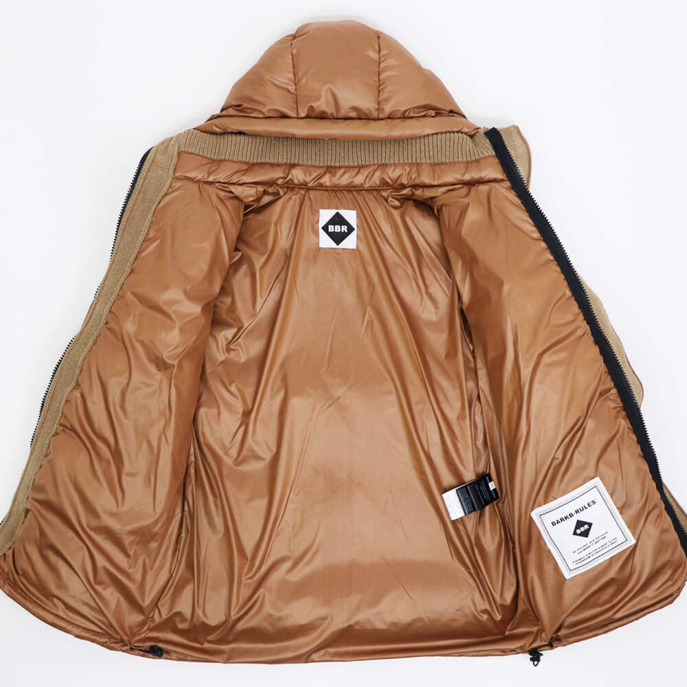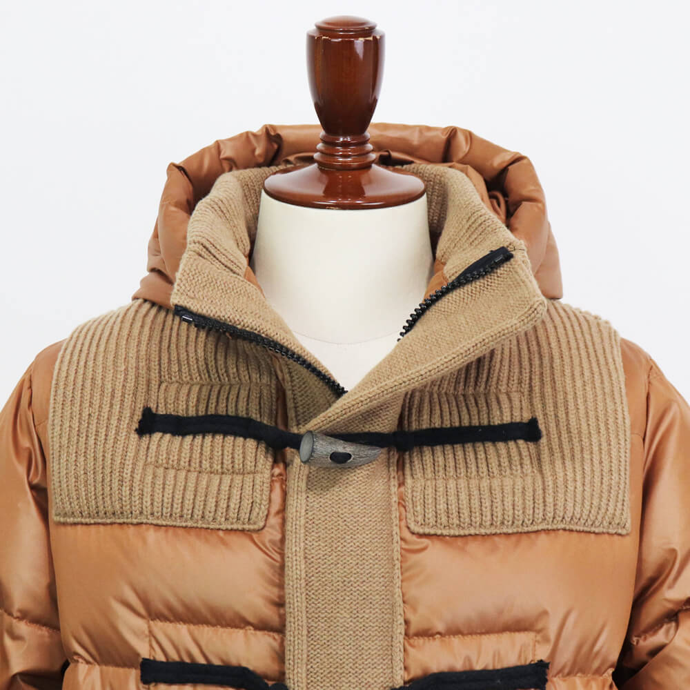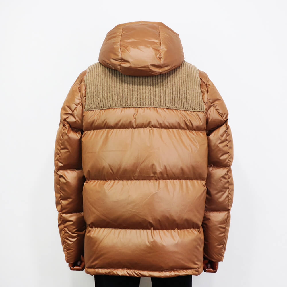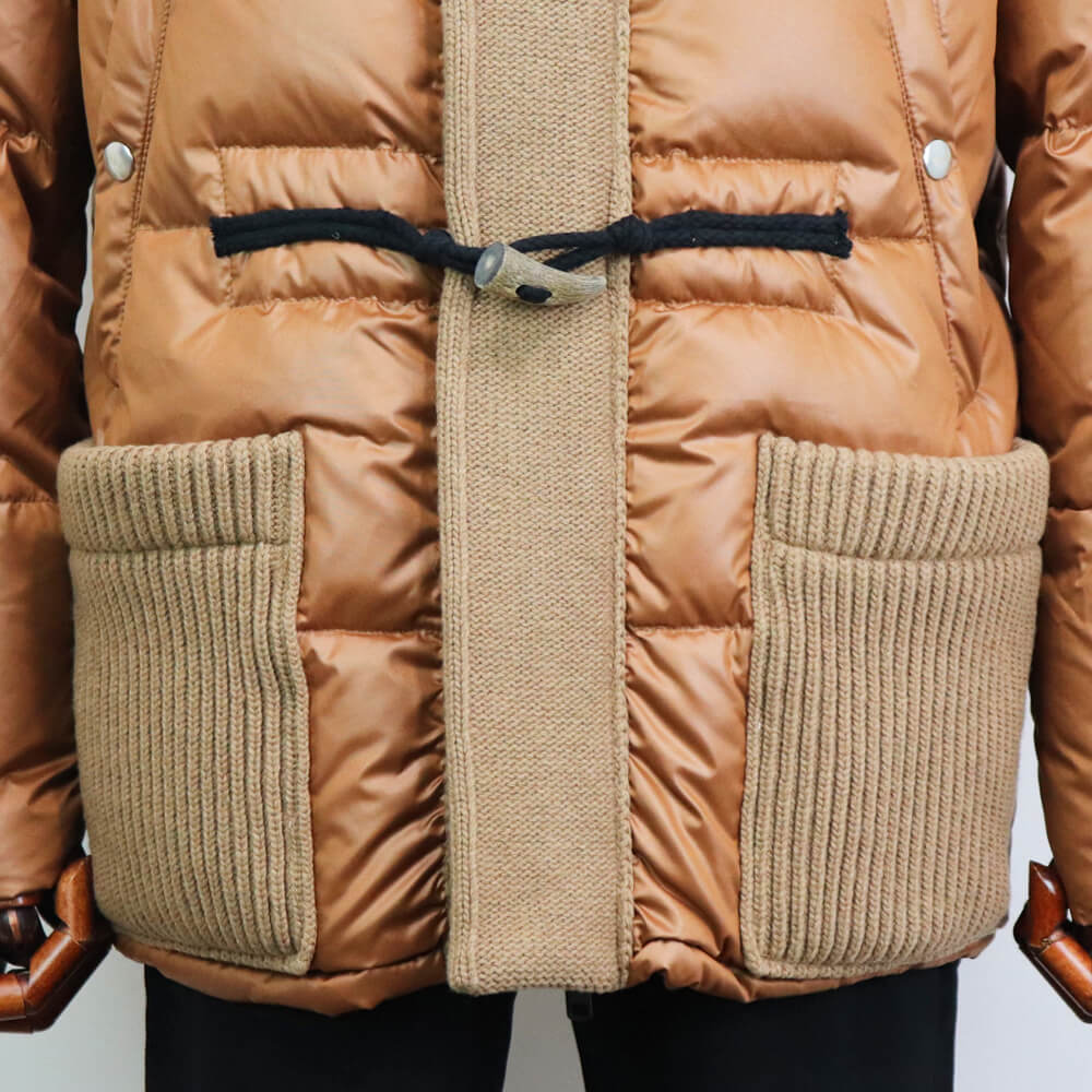 ニットダッフルコートで一世を風靡したBARKのフィロソフィーを継承しつつ更にストリート感覚を追求した新ブランド「BBR」が2022年秋冬より日本限定販売を始めました。ファーストシーズンに続き、ショート丈のダッフルダウンをリリース。BARKらしさを残しつつ、今の時代にマッチさせたニットとダウンのコンビで、高級ダウン素材(ダウン80/フェザー20)を増やすことで軽量化し、特徴的な部分使いニットとのデザインバランスでモダンな仕上がりになっています。スーツ、ジャケットのアウターとして、またカジュアルな着こなしのアウターとして、あらゆるシーンに対応可能な万能なダウンとなっています。トグル部分は天然水牛の角を使用している為、一点ずつ模様が違いますので予めご了承ください。