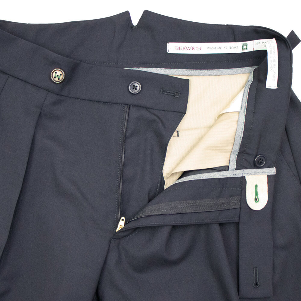BERWICHを代表するモデルSCOTCH( スコッチ )は、イン2プリーツが入りサイドアジャスターが付くクラシカルな仕様です。シルエットはゆったりとした腰回りと裾口にかけての美しいテーパードが目を惹くモダンクラシックな表情が特徴のモデルとなっています。美脚効果は抜群で、実にいまどきなパンツ。生地はストレッチウール。伸縮性抜群でサラリとした軽いタッチが春夏にピッタリ。さらに手洗いが可能なのでご自宅で手入れが出来るのもいいですね。春夏のコーディネートを引き締めるカラーセレクトとなっています。