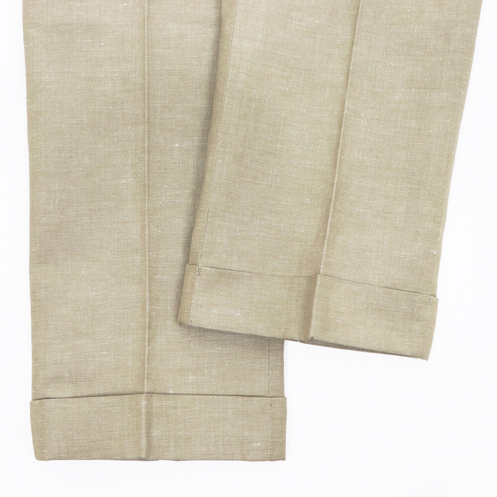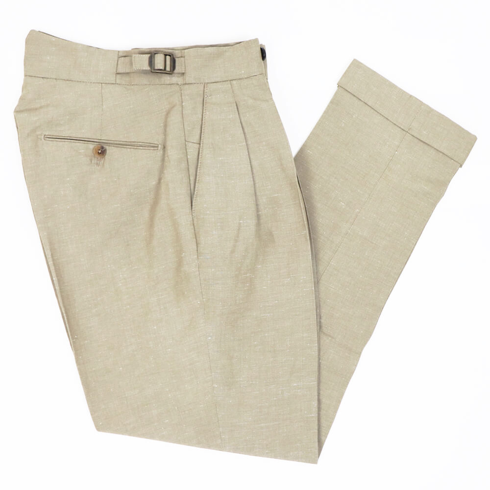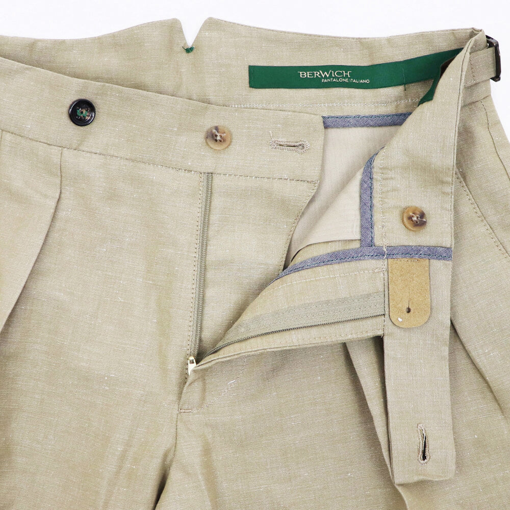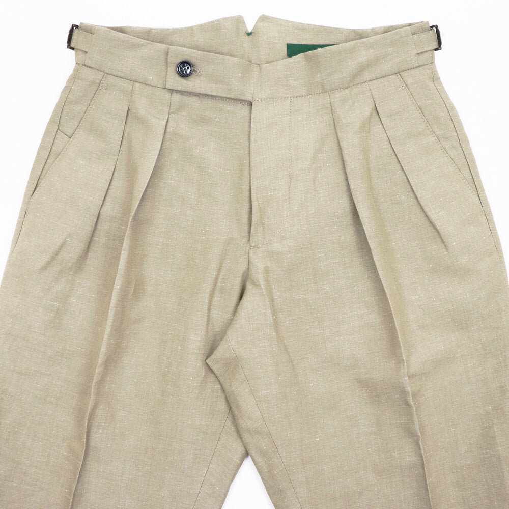 BERWICHを代表するモデル"SCOTCH(スコッチ)”2プリーツが入りサイドアジャスターが付くクラシカルな仕様で、ゆったりとした腰回りと裾口にかけての美しいテーパードが目を惹くモダンクラシックな表情が特徴です。生地は、春夏にピッタリなコットンリネン。清涼感ある大人のカジュアルスタイルにピッタリな雰囲気となっています。