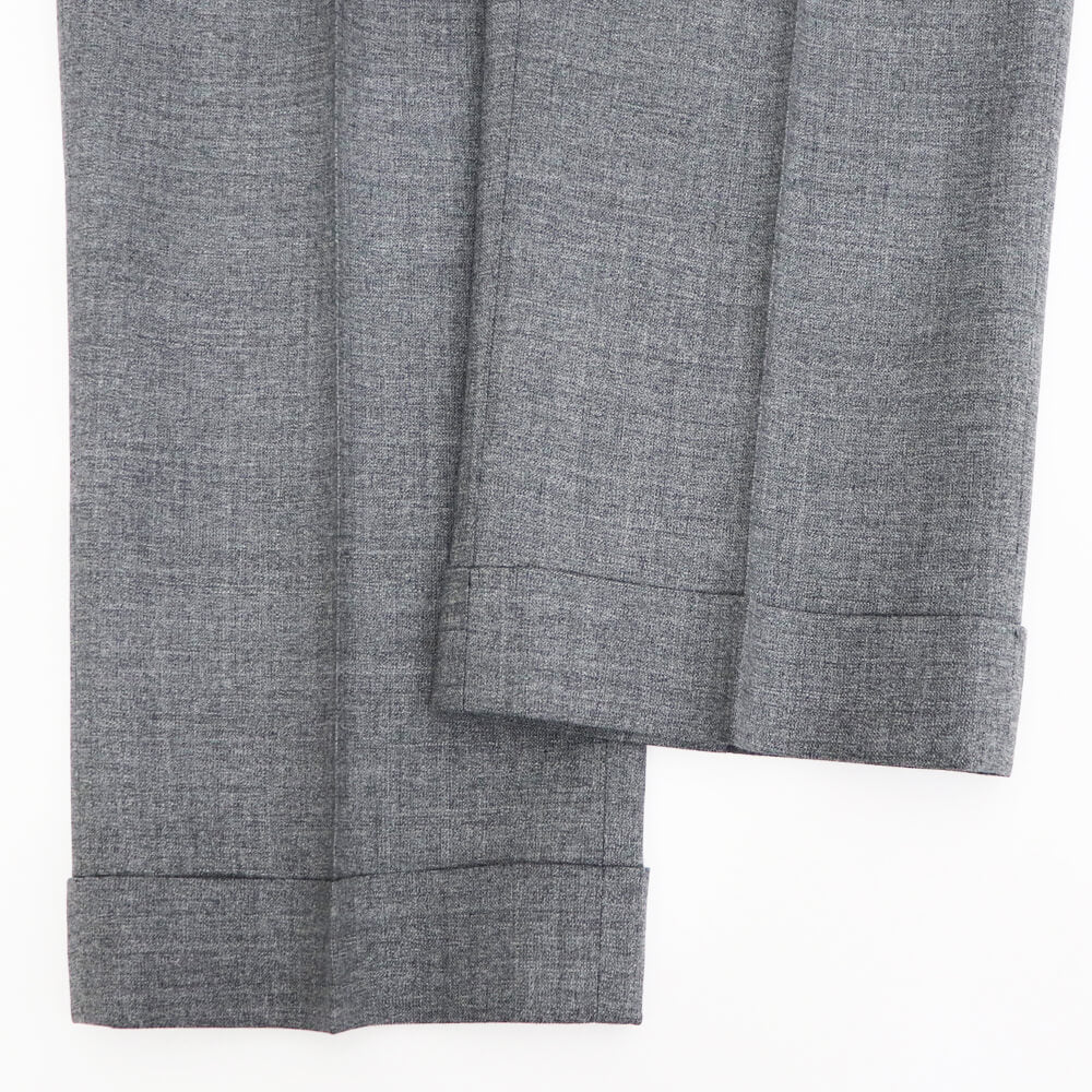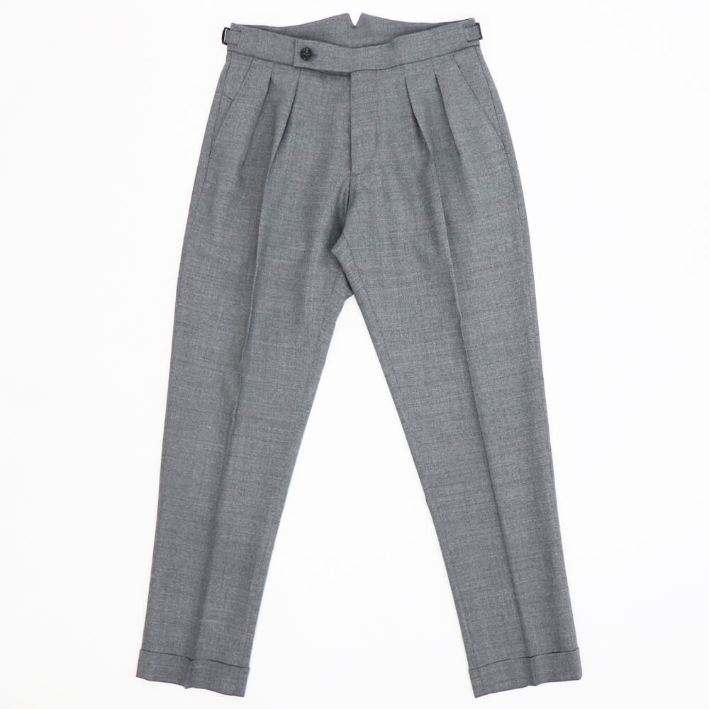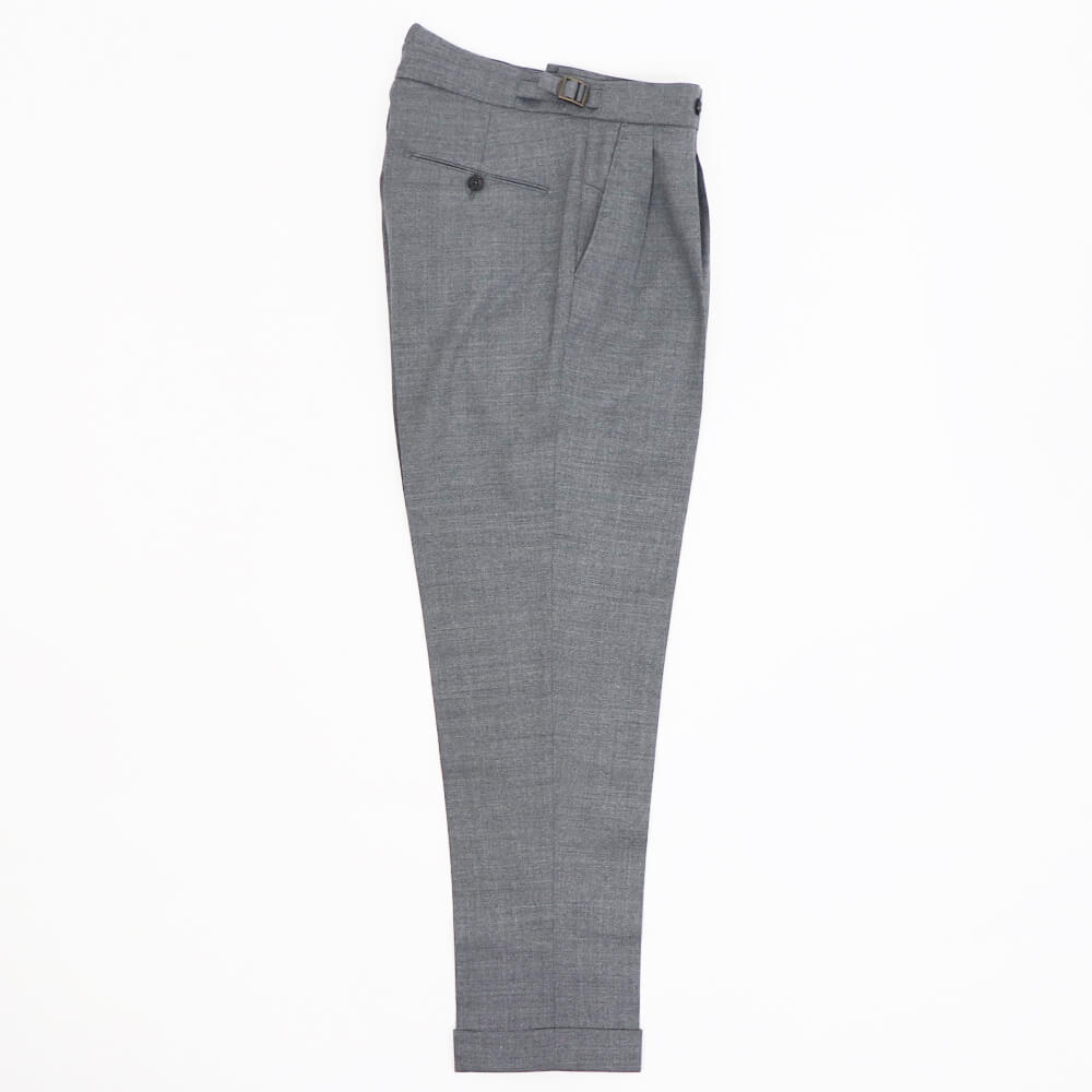 BERWICHを代表するモデル"SCOTCH(スコッチ)”2プリーツが入りサイドアジャスターが付くクラシカルな仕様で、ゆったりとした腰回りと裾口にかけての美しいテーパードが目を惹くモダンクラシックな表情が特徴です。生地は、イタリア高級テキスタイルメーカーの"VITALE BARBERIS CANONICO(ヴィターレ バルベリス カノニコ)"社製のウールファブリックを採用しています。同ブランドでは、提案素材となっているVBC。名門テキスタイルメーカーなだけにクオリティと安心感は流石な仕上がり。