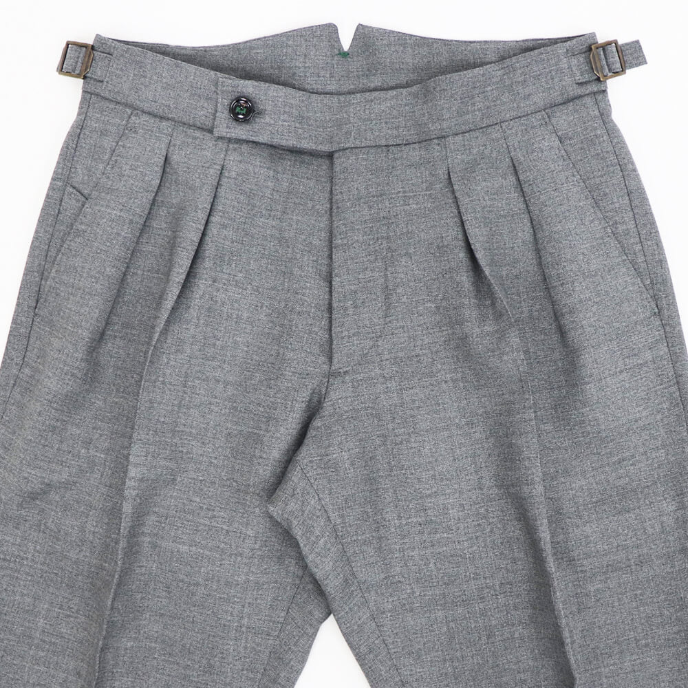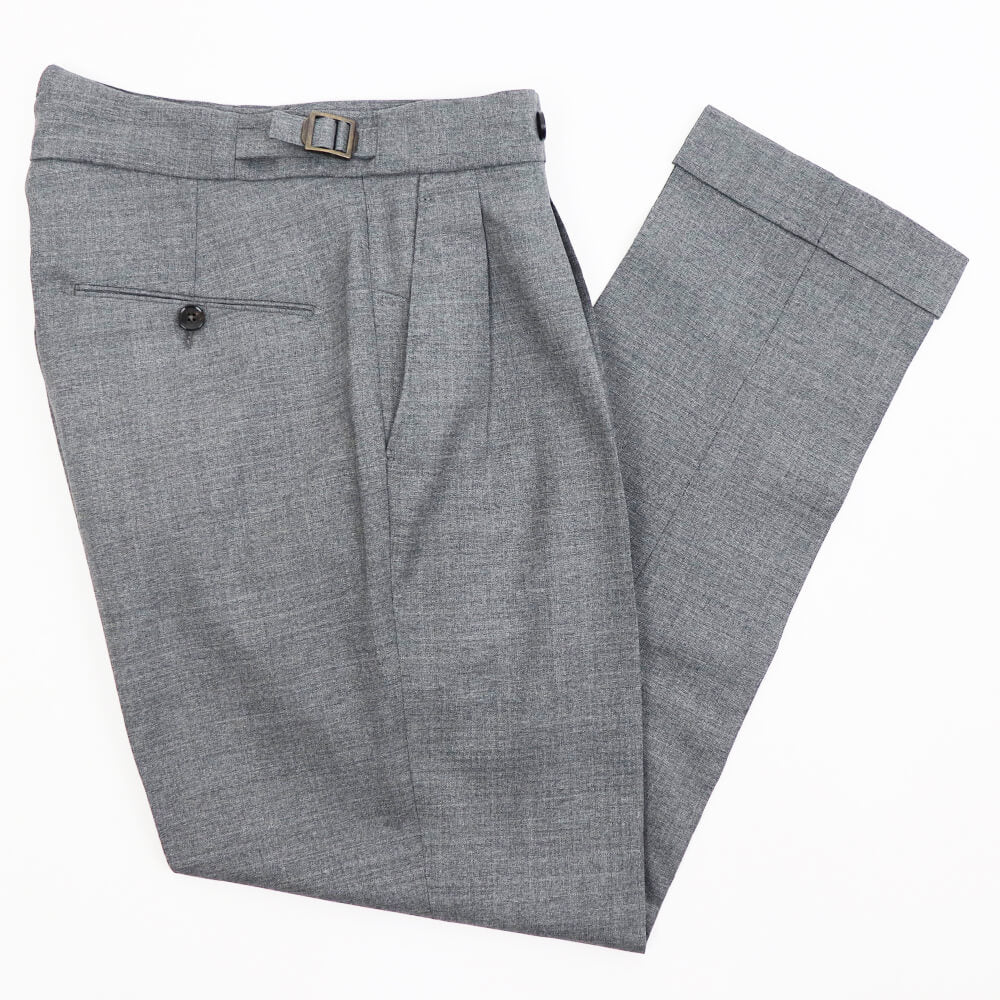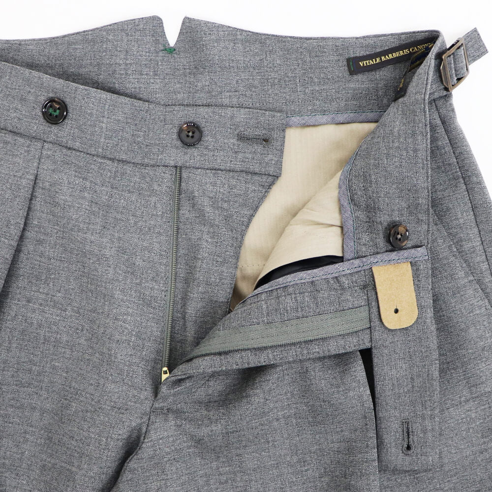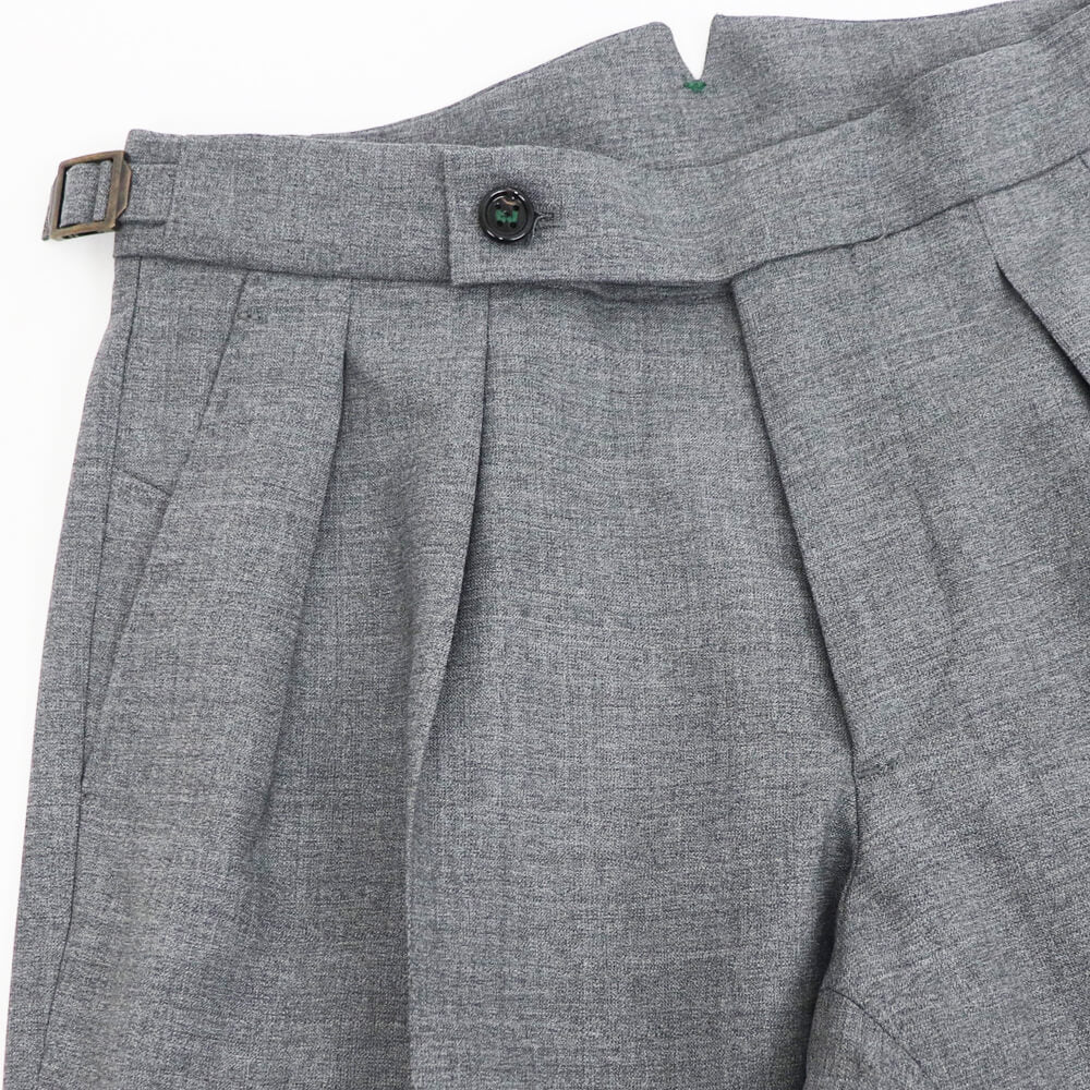 BERWICHを代表するモデル"SCOTCH(スコッチ)”2プリーツが入りサイドアジャスターが付くクラシカルな仕様で、ゆったりとした腰回りと裾口にかけての美しいテーパードが目を惹くモダンクラシックな表情が特徴です。生地は、イタリア高級テキスタイルメーカーの"VITALE BARBERIS CANONICO(ヴィターレ バルベリス カノニコ)"社製のウールファブリックを採用しています。同ブランドでは、提案素材となっているVBC。名門テキスタイルメーカーなだけにクオリティと安心感は流石な仕上がり。