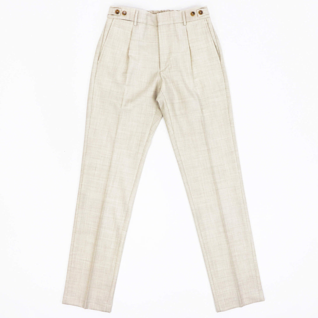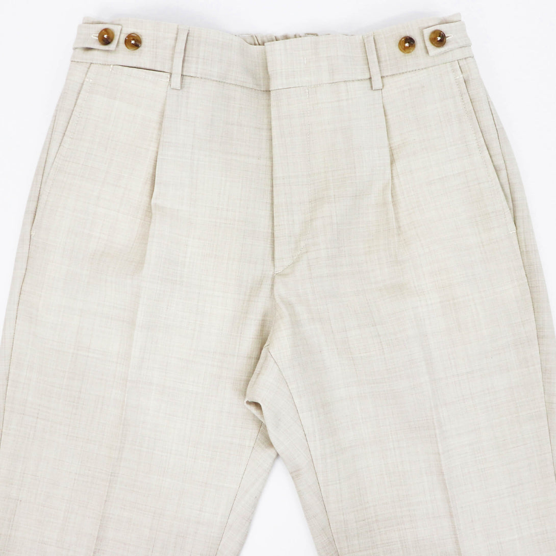 BERWICH(ベルウィッチ)の新作は、BERTO/ベルトのウールストレッチ素材をセレクト。BERWICHの数あるモデルの中で、最もベーシックなシルエットのベルトは、ベルトループもついているのでカジュアルはもちろん、ドレススタイルでも着用いただける一本となります。シルエットは腿周りに適度なゆとりを持たせながら、緩やかなテーパードがかかっており、モダンで、スッキリとしたシルエットとなります。