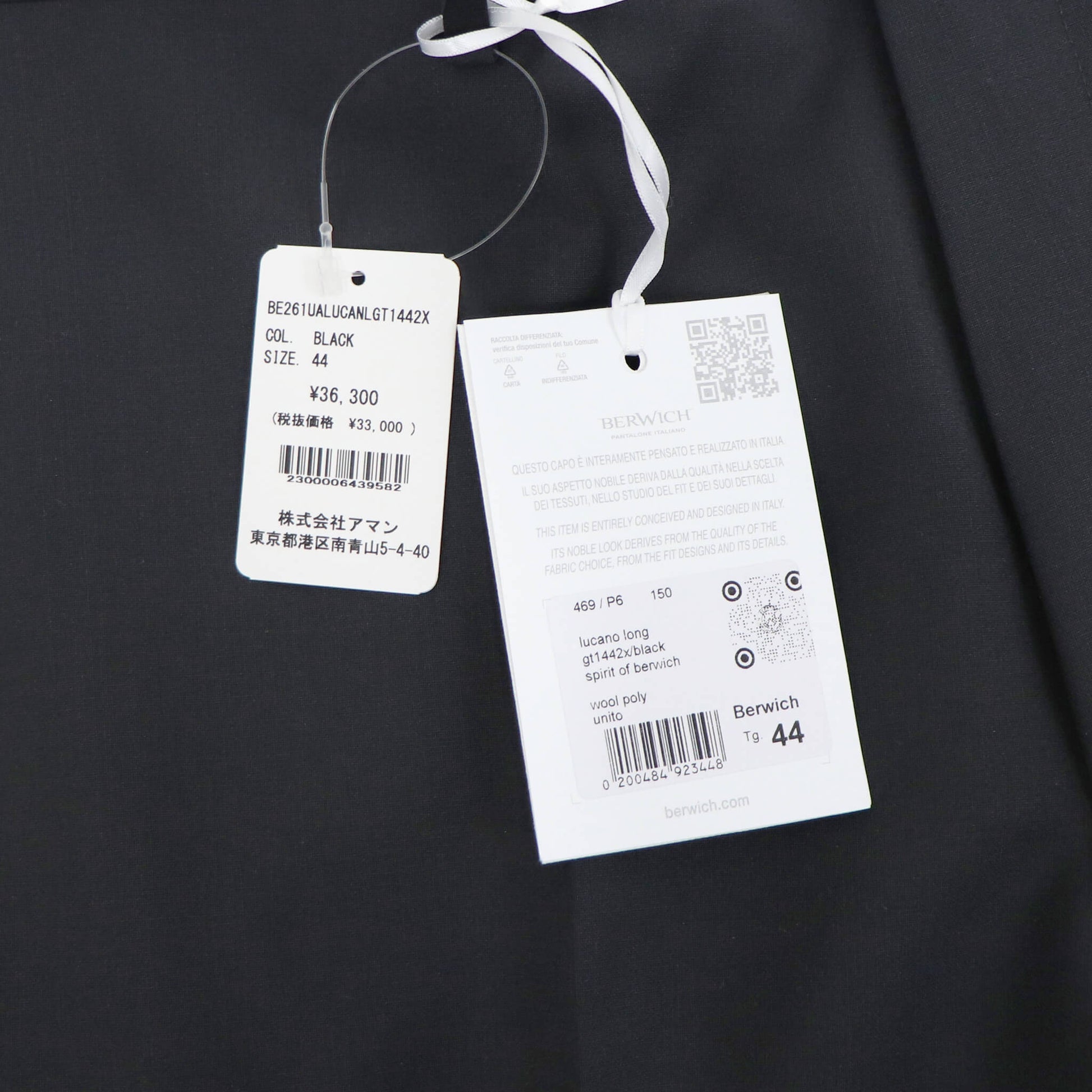 BERWICH(ベルウィッチ)LUCANO LONG ノープリーツ ワイドテーパード ストレッチ パンツ【ブラック】国内正規品