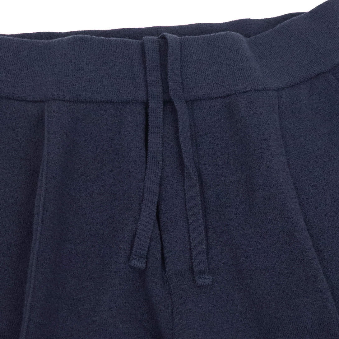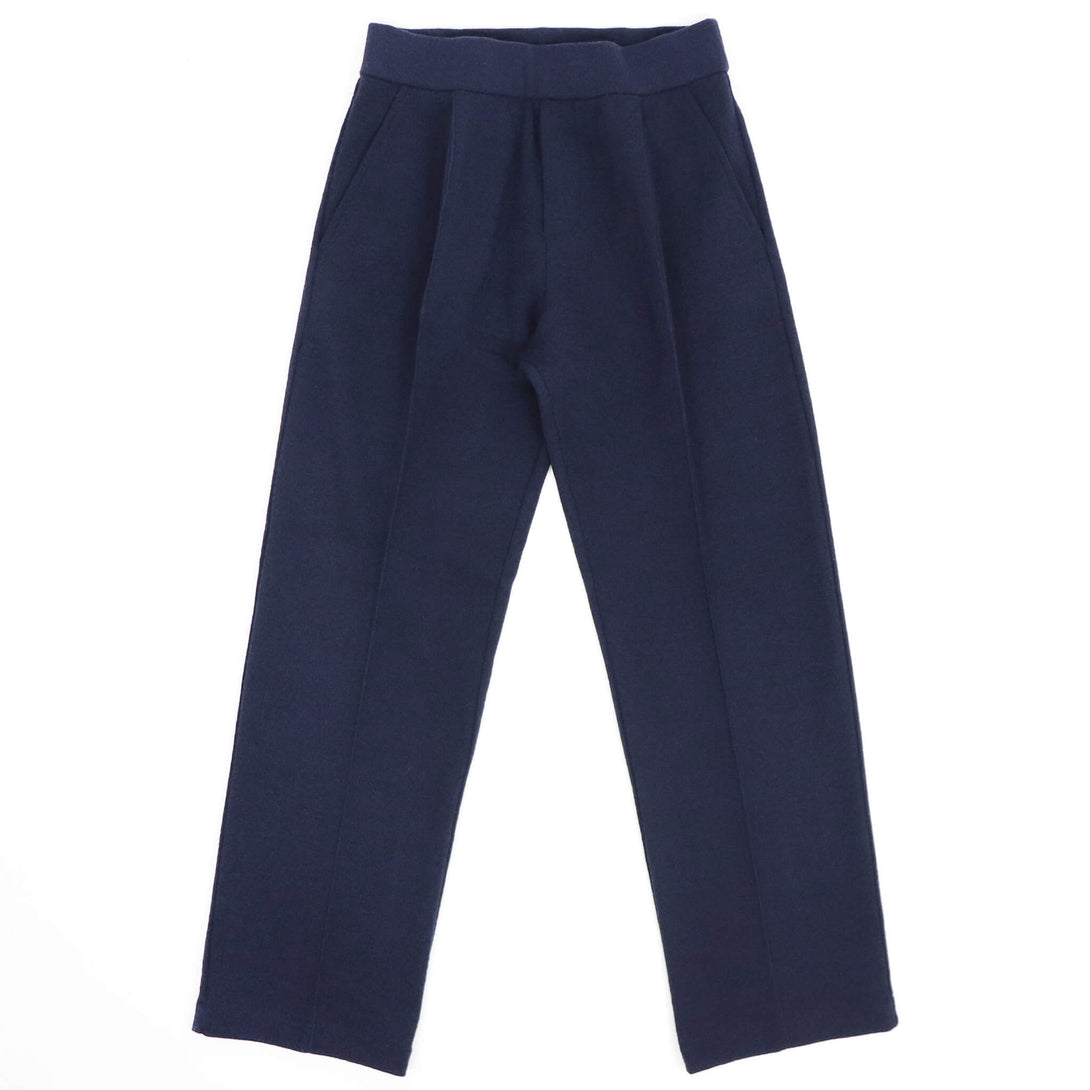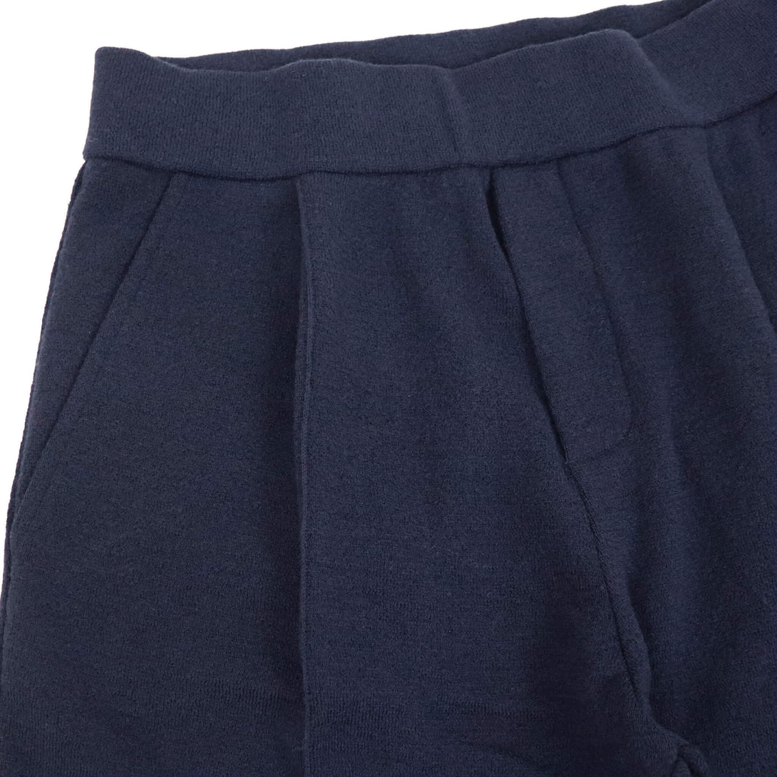 お持ちでない方がほとんどではないでしょうか?!ニットのイージーパンツ。ドライな肌触りと軽やかな穿き心地、そして程よい温かさを兼ね備えたニットパンツ。ミラノリブ編みによるしっかりとした生地感で、型崩れしにくく、美しいシルエットをキープします。すっきりとした細身のラインながら優れたストレッチ性があり、軽量素材のためリラックス感のある穿き心地に仕上げています。フロントにはピンタックを施し、センタープレスのような視覚効果で脚をまっすぐに見せ、ドレスパンツの様な見え方になります。ヒップ部分には布帛仕立て風の飾りポケットを配置。上品さと快適さを両立した、大人のリラックスした休日に欠かせない一本となります。