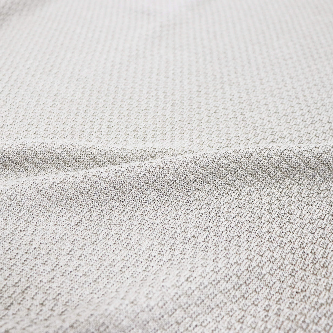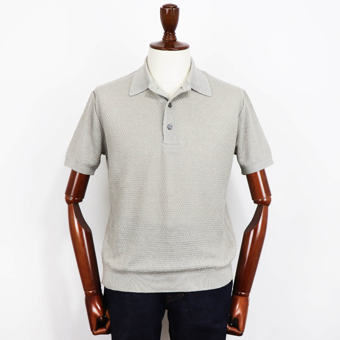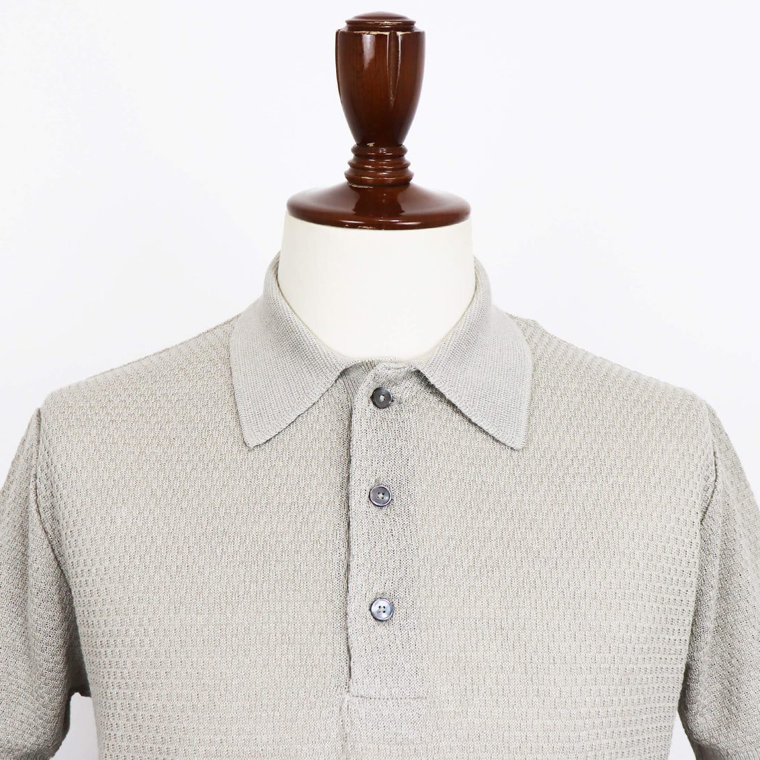 リネン77%、シルク23%の混紡糸「シルクリネン」を使用。リネン特有の爽やかな通気性と吸湿速乾性に加え、“繊維の女王”と称されるシルクのしなやかさと上品な光沢が絶妙に調和した春夏にふさわしい素材です。編地には立体感のあるリンクス編みを採用。モノグラム調の織り柄がさりげない表情を生み、ニットならではの伸縮性で動きやすく快適な着心地を実現しました。衿はミラノリブでしっかりと構築し、三つボタンのスキッパーデザインがクラシカルかつ品のある佇まいを演出。袖口と裾口はリブ仕立てで引き締まった印象に。ややゆとりのあるクラシックなシルエットで、一枚でもジャケットのインナーとしても映える万能な一着となっております。同素材のカーディガンと合わせたアンサンブルコーディネートもおすすめです。