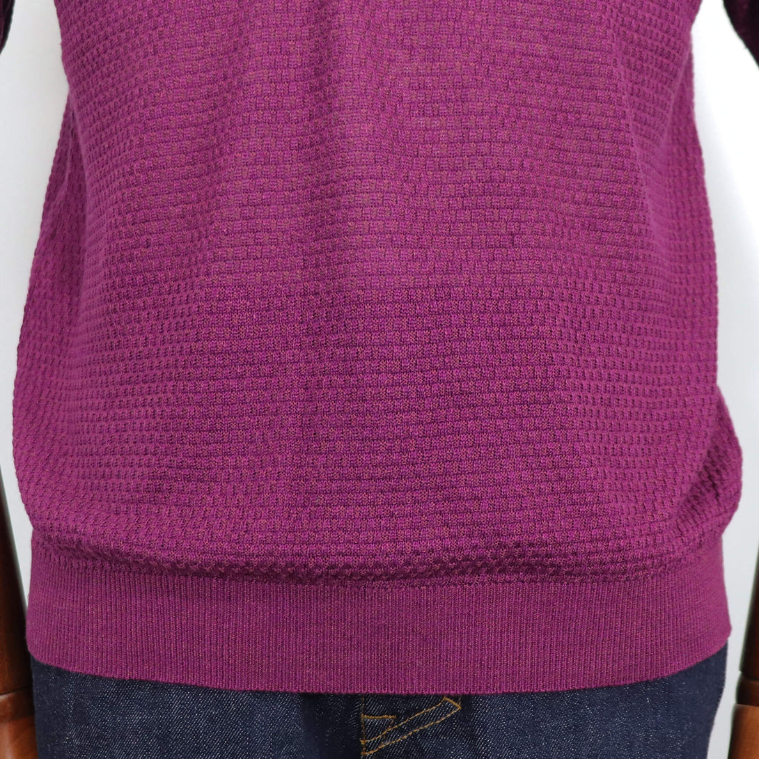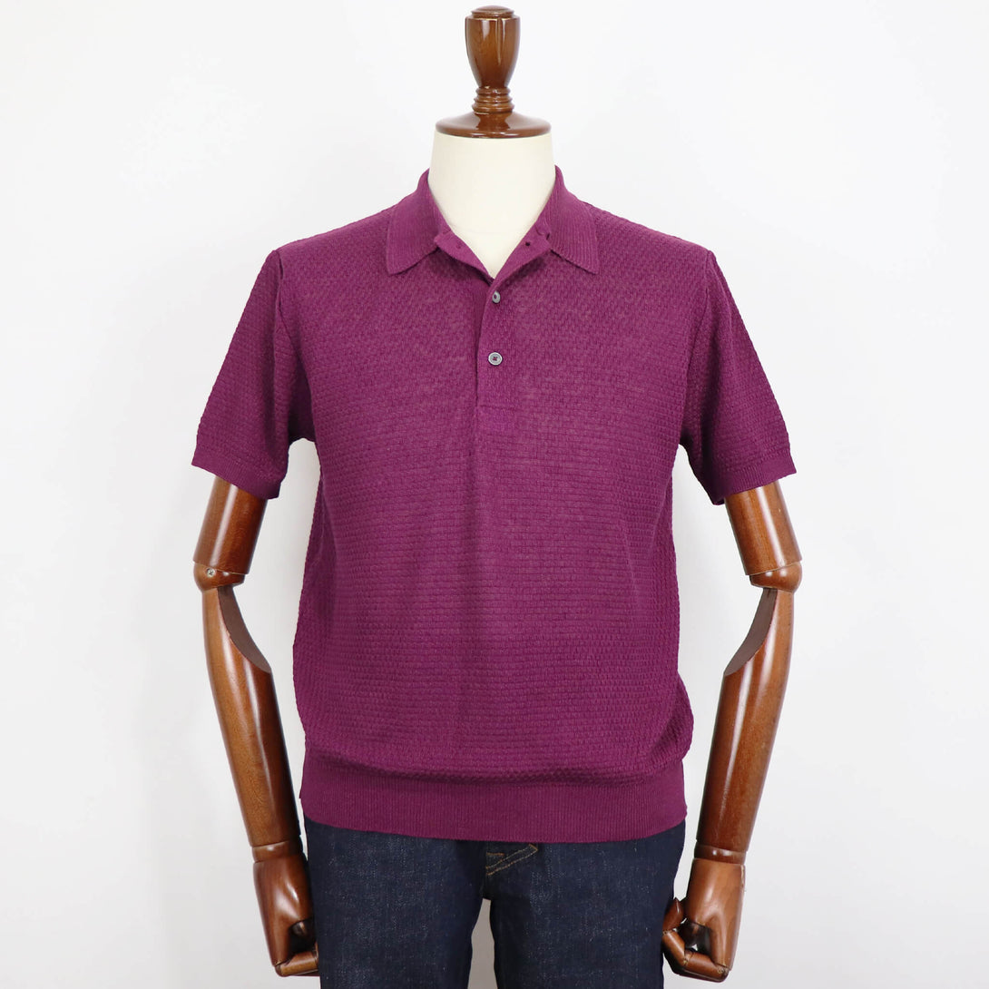リネン77%、シルク23%の混紡糸「シルクリネン」を使用。リネン特有の爽やかな通気性と吸湿速乾性に加え、“繊維の女王”と称されるシルクのしなやかさと上品な光沢が絶妙に調和した春夏にふさわしい素材です。編地には立体感のあるリンクス編みを採用。モノグラム調の織り柄がさりげない表情を生み、ニットならではの伸縮性で動きやすく快適な着心地を実現しました。衿はミラノリブでしっかりと構築し、三つボタンのスキッパーデザインがクラシカルかつ品のある佇まいを演出。袖口と裾口はリブ仕立てで引き締まった印象に。ややゆとりのあるクラシックなシルエットで、一枚でもジャケットのインナーとしても映える万能な一着となっております。同素材のカーディガンと合わせたアンサンブルコーディネートもおすすめです。