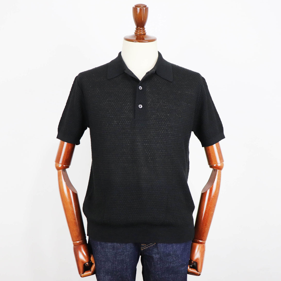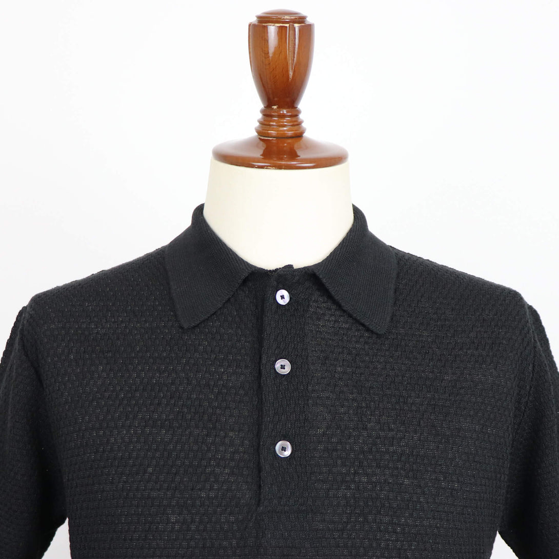 リネン77%、シルク23%の混紡糸「シルクリネン」を使用。リネン特有の爽やかな通気性と吸湿速乾性に加え、“繊維の女王”と称されるシルクのしなやかさと上品な光沢が絶妙に調和した春夏にふさわしい素材です。編地には立体感のあるリンクス編みを採用。モノグラム調の織り柄がさりげない表情を生み、ニットならではの伸縮性で動きやすく快適な着心地を実現しました。衿はミラノリブでしっかりと構築し、三つボタンのスキッパーデザインがクラシカルかつ品のある佇まいを演出。袖口と裾口はリブ仕立てで引き締まった印象に。ややゆとりのあるクラシックなシルエットで、一枚でもジャケットのインナーとしても映える万能な一着となっております。同素材のカーディガンと合わせたアンサンブルコーディネートもおすすめです。