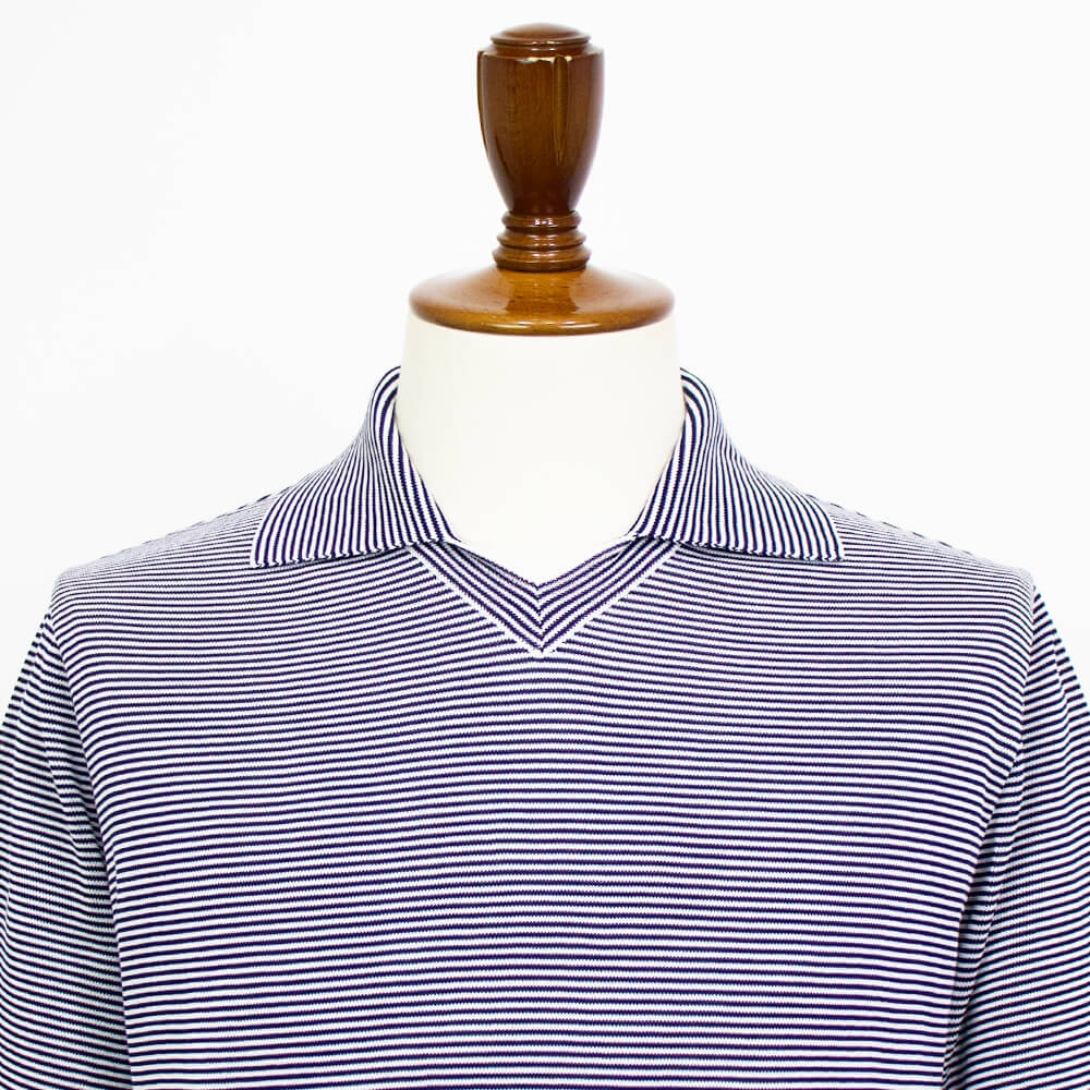 スキッパーカラーの襟の大きさや開き具合が絶妙に考慮され、襟元はミラノリブでしっかりと編み上げルことでしなやかなロールラインを保つように設計されています。また裾は天竺袋仕様になっておりエレガントな雰囲気をプラスしています。