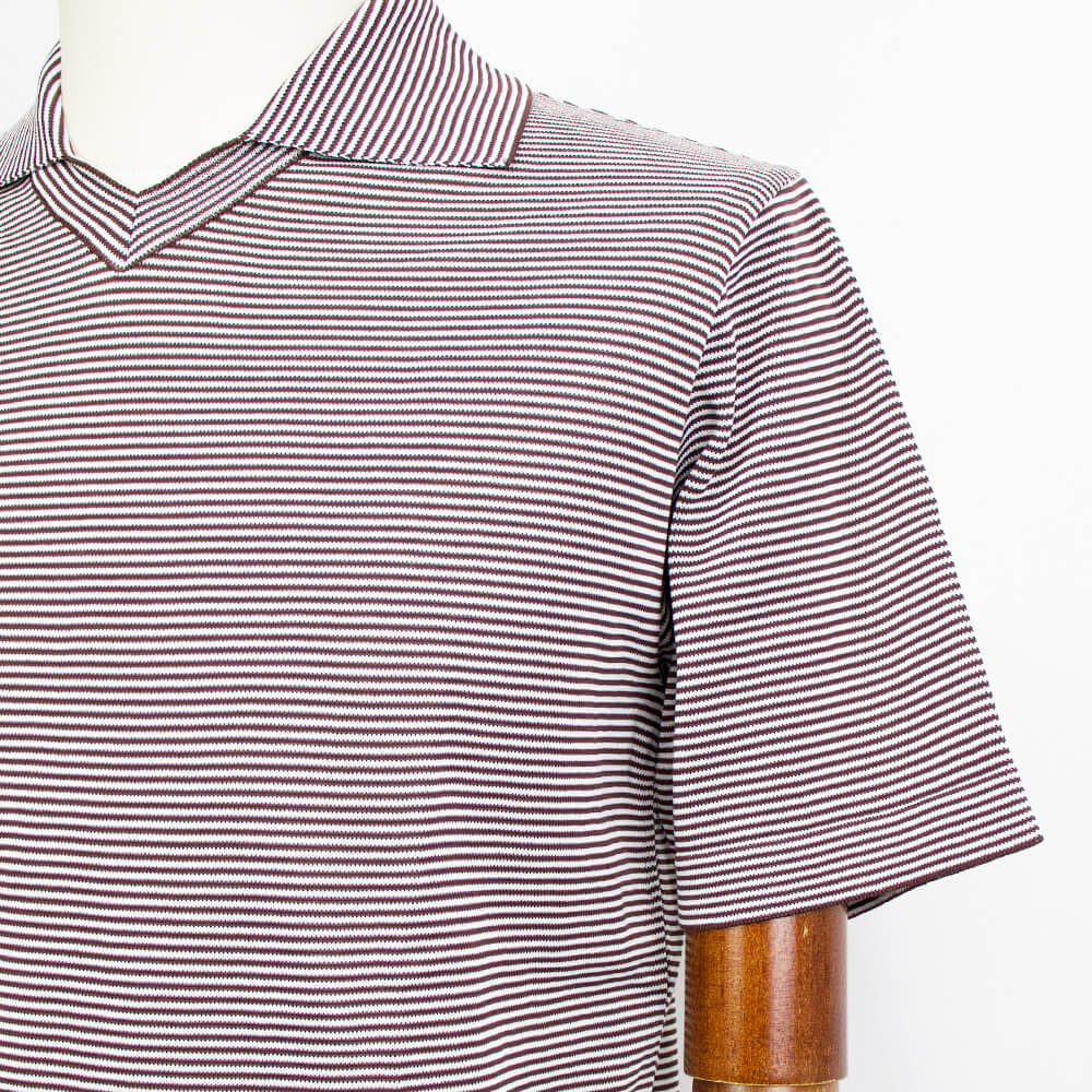 スキッパーカラーの襟の大きさや開き具合が絶妙に考慮され、襟元はミラノリブでしっかりと編み上げルことでしなやかなロールラインを保つように設計されています。また裾は天竺袋仕様になっておりエレガントな雰囲気をプラスしています。