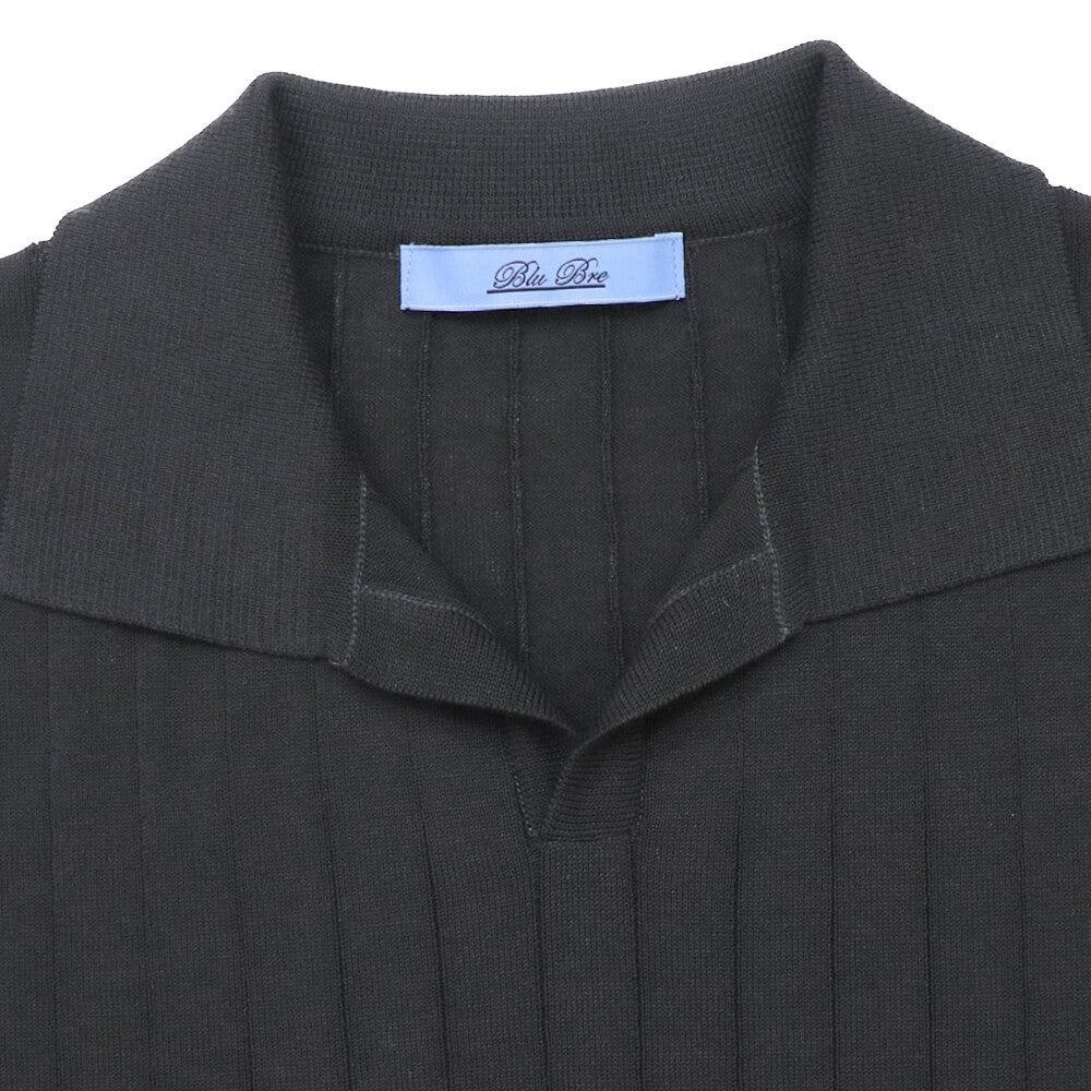 まず目に付くのがこのリラックスした雰囲気と上品な面持ちを併せ持ったBlu Breらしい存在感です。スキッパーカラーの襟の大きさや開き具合が絶妙に考慮され、襟のみミラノリブ編みにすることでしなやかロールラインを保つように設計されています。