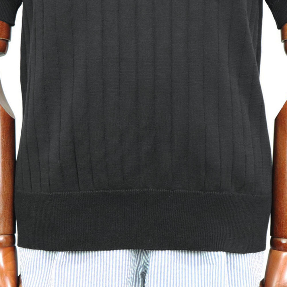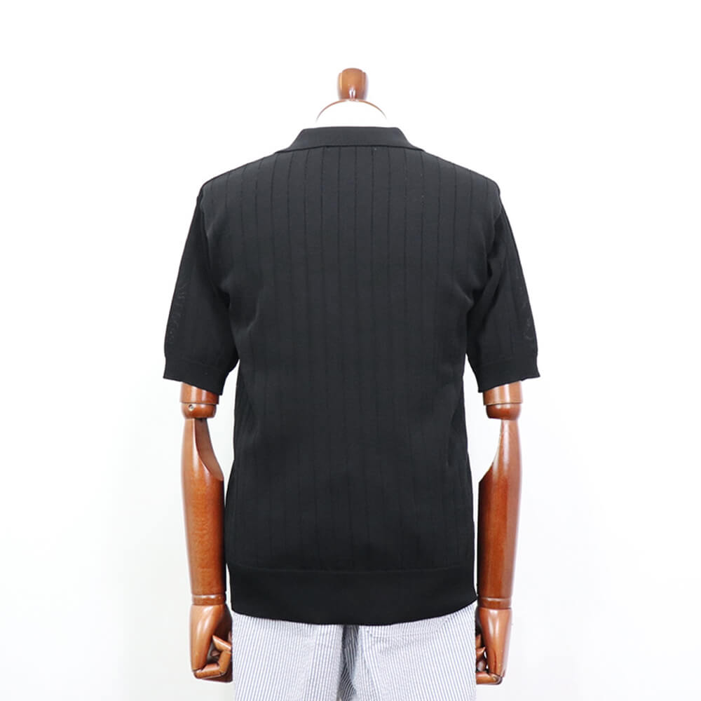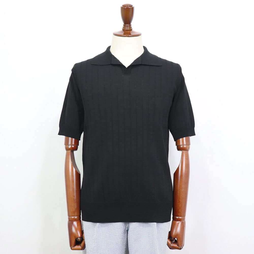 Blu Bre(ブルブレ)ワイドリブ スキッパー コットンニット ポロシャツ【ブラック】国内正規品