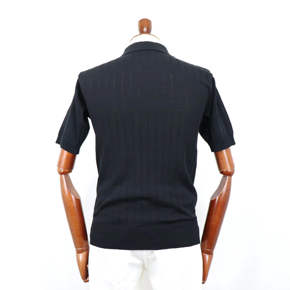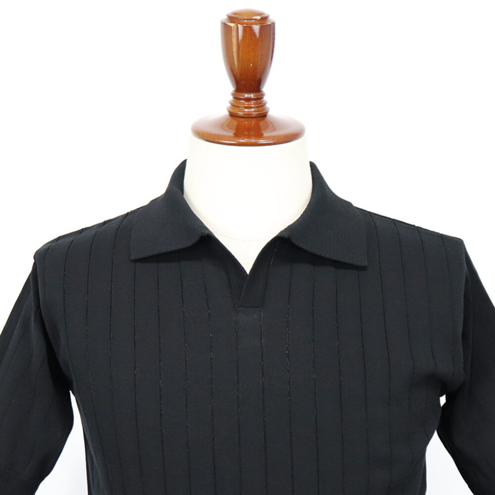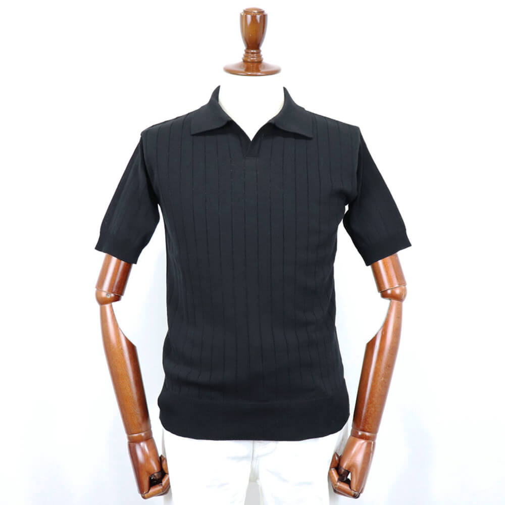 Blu Bre(ブルブレ)コットンニット 針抜きスキッパーポロシャツ【ブラック】国内正規品