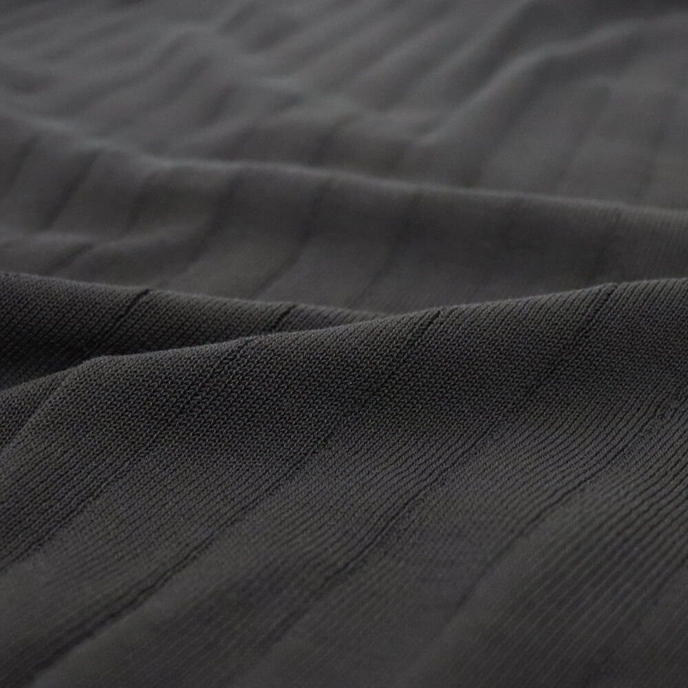 昨年もご好評いただいた、スキッパーポロ。襟の大きさや、空き具合が考慮され襟のみミラノリブ編みにすることで、しなやかなロールラインを保つ設計となっています。12ゲージ2本取で編み地も素材の特性も相まって、張り感がありしっかりしているため、タイトすぎない程よいサイズ感となっています。無地ながらも針抜き編みの凸凹したデザインがピンストライプを連想させる表情となっています。裾口と袖口をリブ編みにし、腕周り、腰回りがスッキリ見えるよう設計され一枚でも様になる大人な仕上がりとなっています。