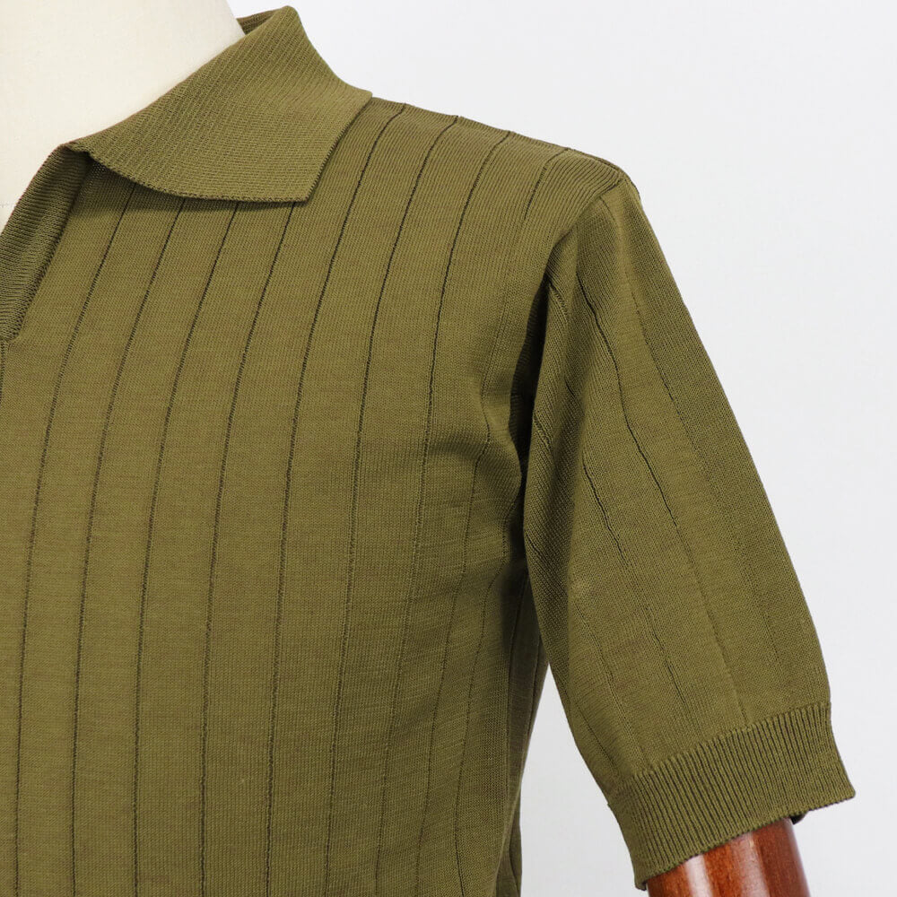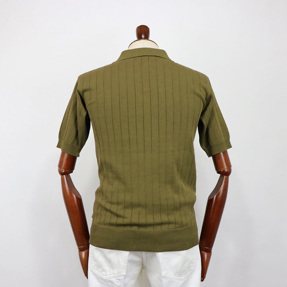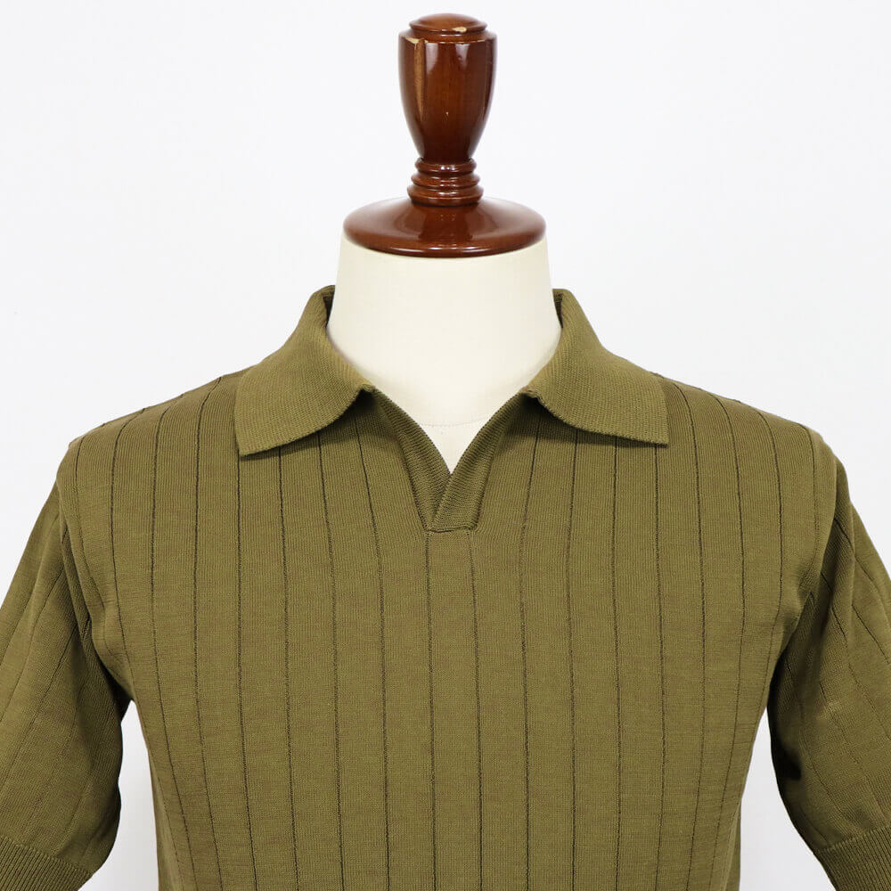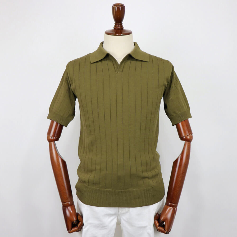 Blu Bre(ブルブレ)コットンニット 針抜きスキッパーポロシャツ【オリーブ】国内正規品