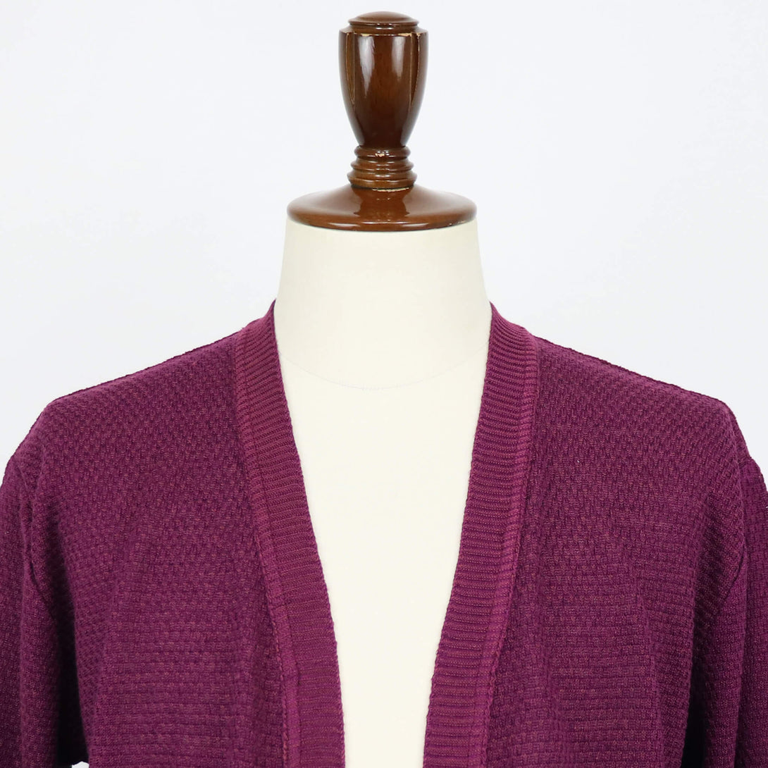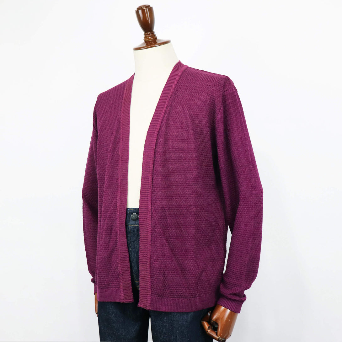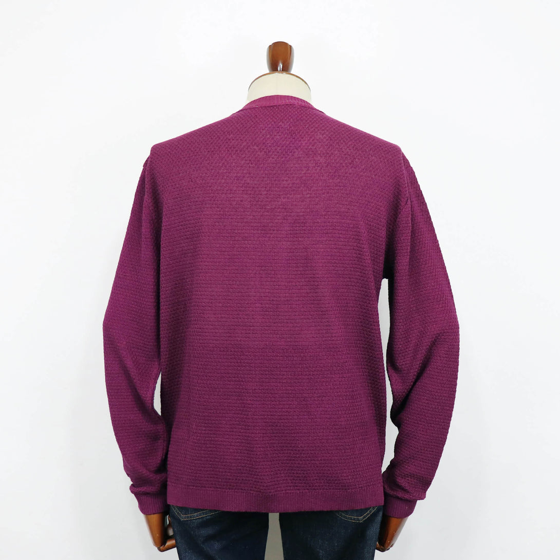 今季のBlu Bre(ブルブレ)新作は、上質な天然素材の魅力を存分に味わえる、大人のための一着。リネン80%、シルク20%の混紡糸「シルクリネン」を使用し、リネンの清涼感と通気性、シルクの上品な光沢と滑らかなタッチが融合した贅沢な素材感で仕上げた、ボタンレスカーディガン。春夏の軽羽織として心地よく、そして品良く着こなせる仕上がりに。ジャケットの代わりとしても重宝するのでは無いでしょうか?!立体感のあるモノグラム調のリンクス編みがシンプルながらも洗練された存在感に。縦横にしなやかに伸びるニットの編地は、動きやすくストレスのない着用感となります。シルエットはクラシックモデルらしく、ほどよくゆとりのある設計で、抜け感のあるボタンレス仕様。衿から前立てまでを太幅のリブで切り替え、落ち着きの中にもクラス感を感じさせる一枚に仕上がっています。