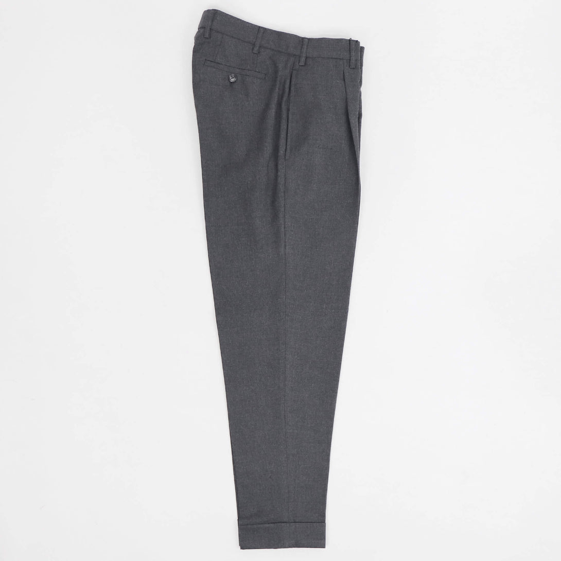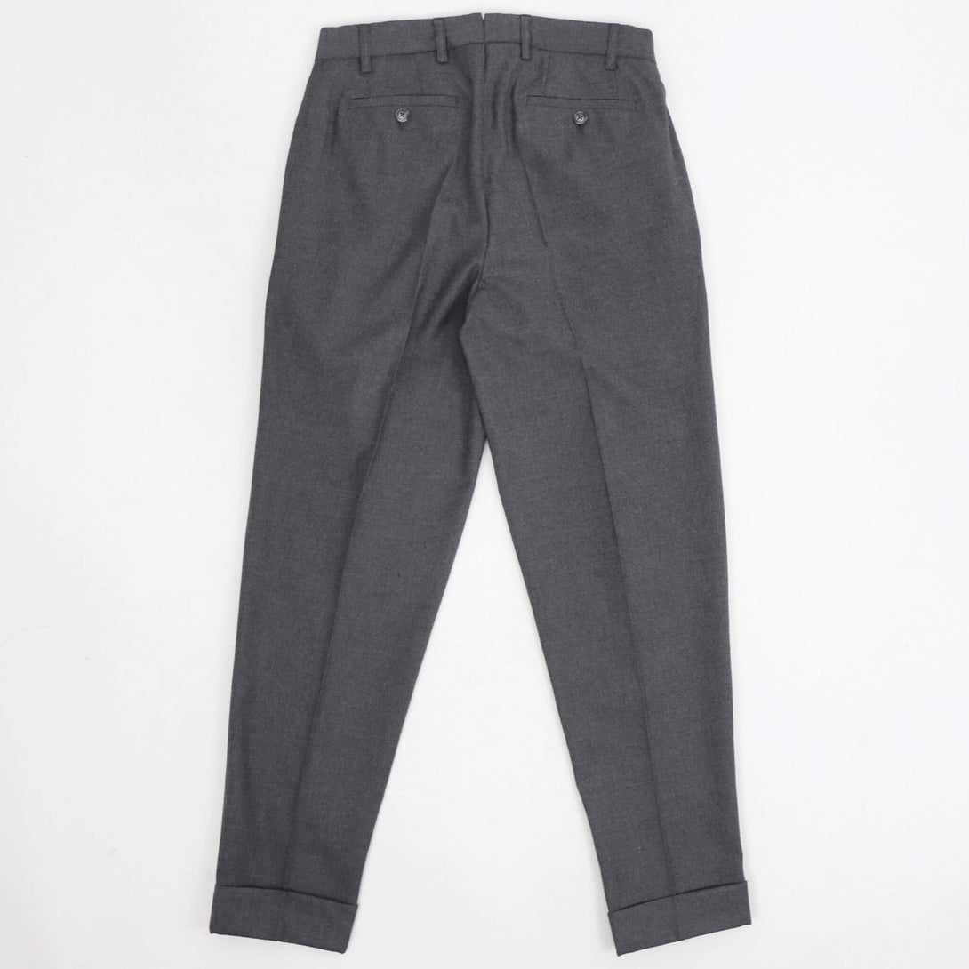 ベルギー王室御用達のファクトリーブランドであり、ドリスヴァンノッテンのOEMも手がけている、ボレリオ。今回のモデルは、"DANNO2" アウトのワンプリーツ、股上やワタリ幅はイタリアのパンツブランドにくらべ、ややゆとりを持たせたシルエット。スソにかけて綺麗なテーパードを施し、クラシカルな雰囲気とスポーティーさを合わせ持つ、モデルなシルエットです。