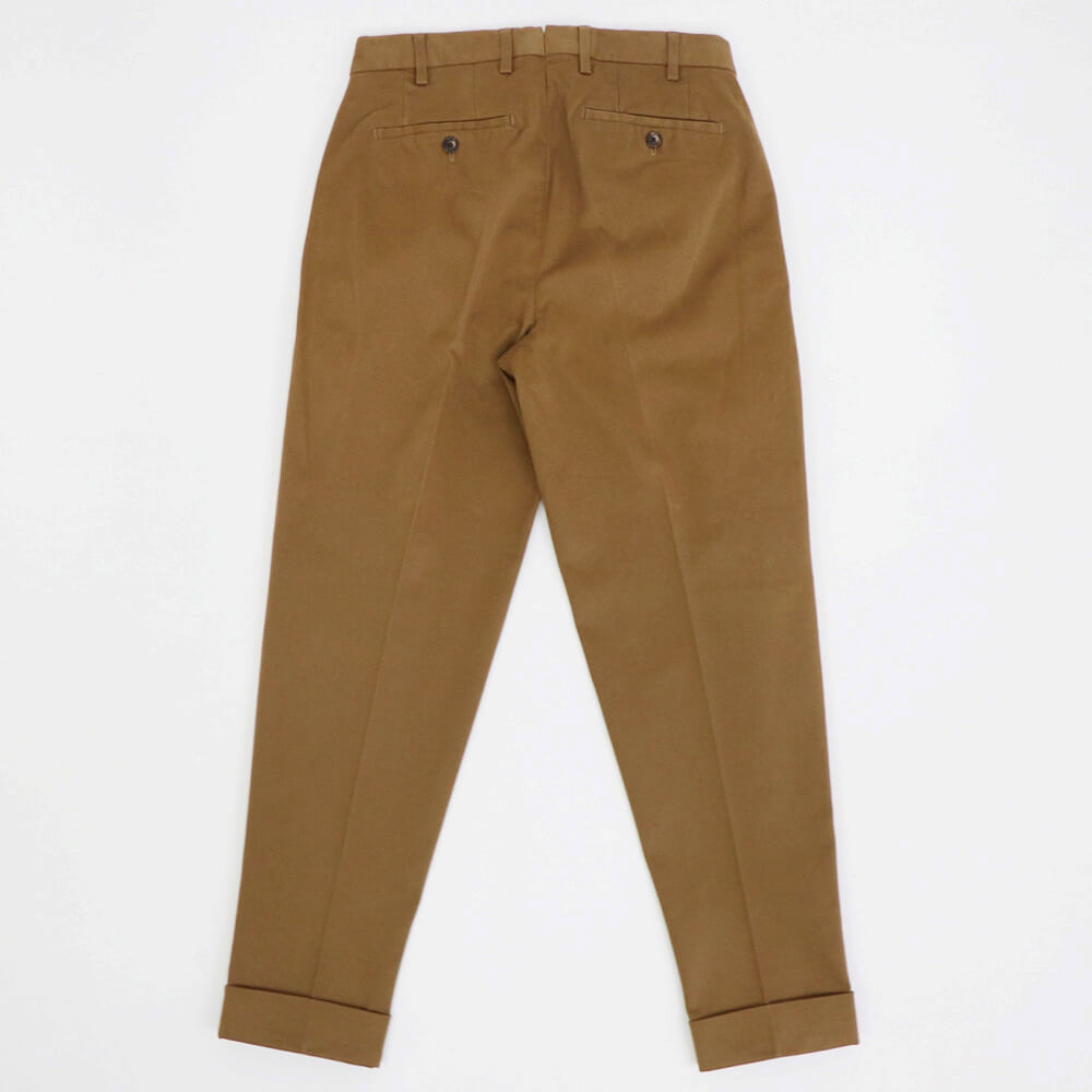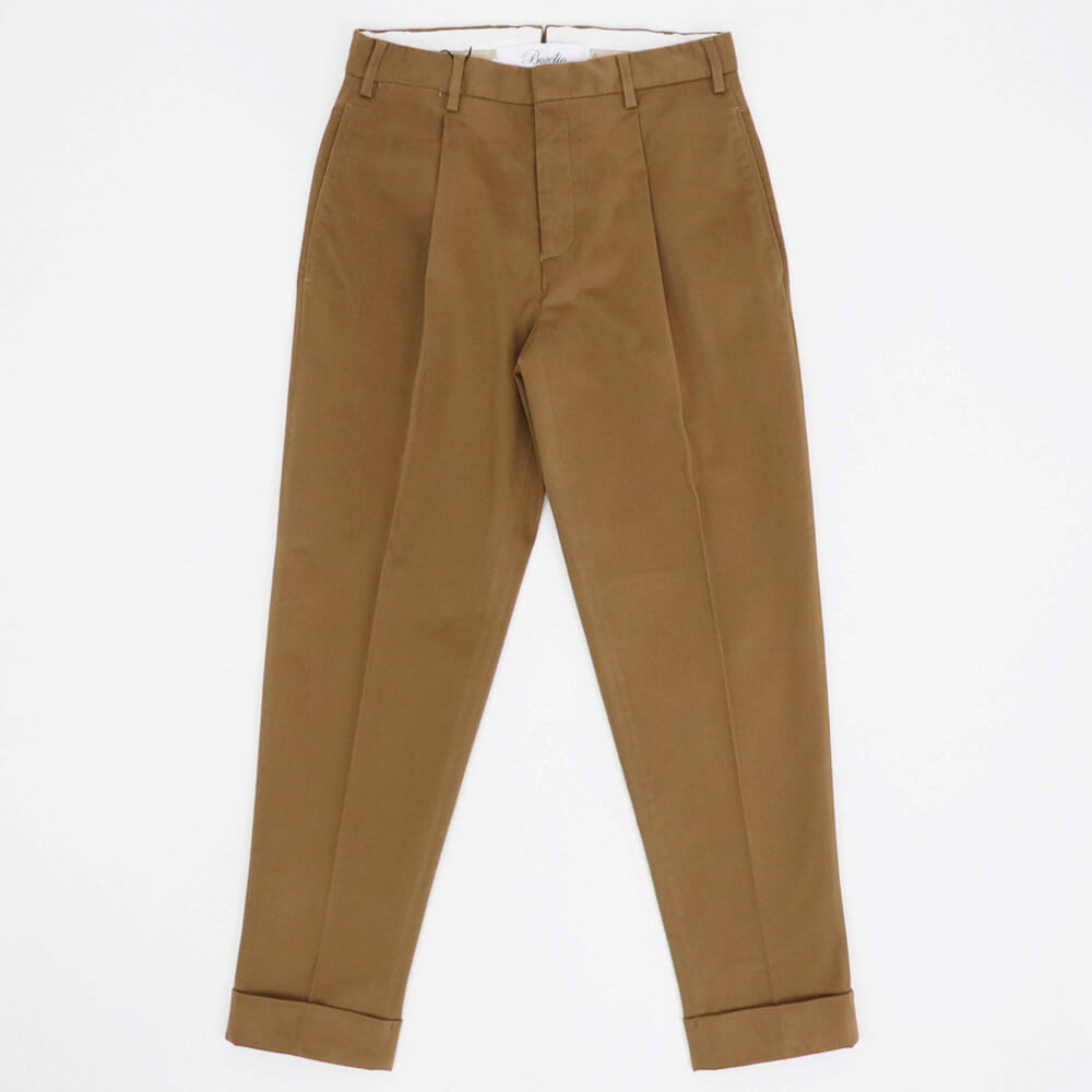 Giottoでは昨年から展開しているボレリオ。昨年は即完売だった同型パンツ。腰回りのフィット感、安心の股上は今まで履いてきたパンツの中でも上位の履き心地。また膝から急激にテーパードする曲線的なシルエットはイタリアやアメリカのパンツには無い独特なフォルム。ゆる過ぎずかっちりし過ぎないまさにボレリオ独自の雰囲気を味わえるパンツに仕上がっています。