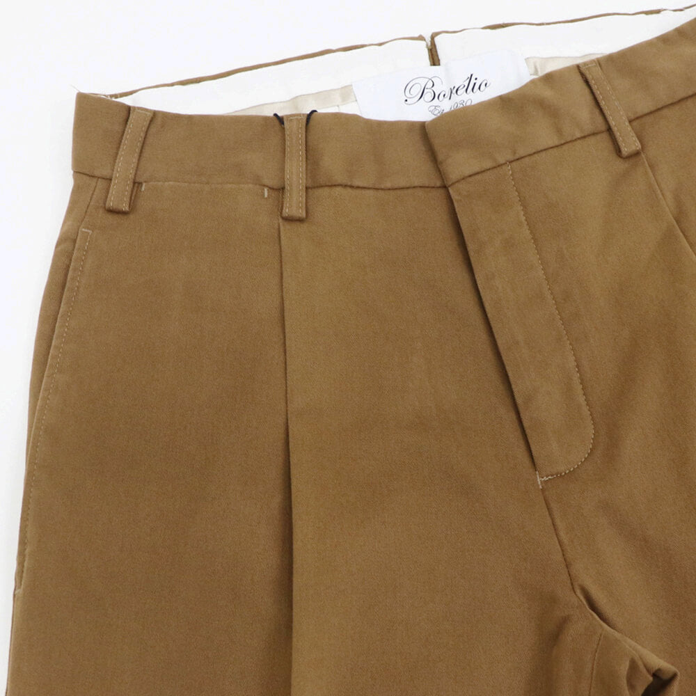 イタリアやイギリスブランドのヒップ下からの直線的なシルエットに対し、Borelioでは曲線的なシルエットでモダン且つエレガントな雰囲気と、クラス感を持ちあわせる。その高い技術力は世界的にも稀有なパンツブランド。