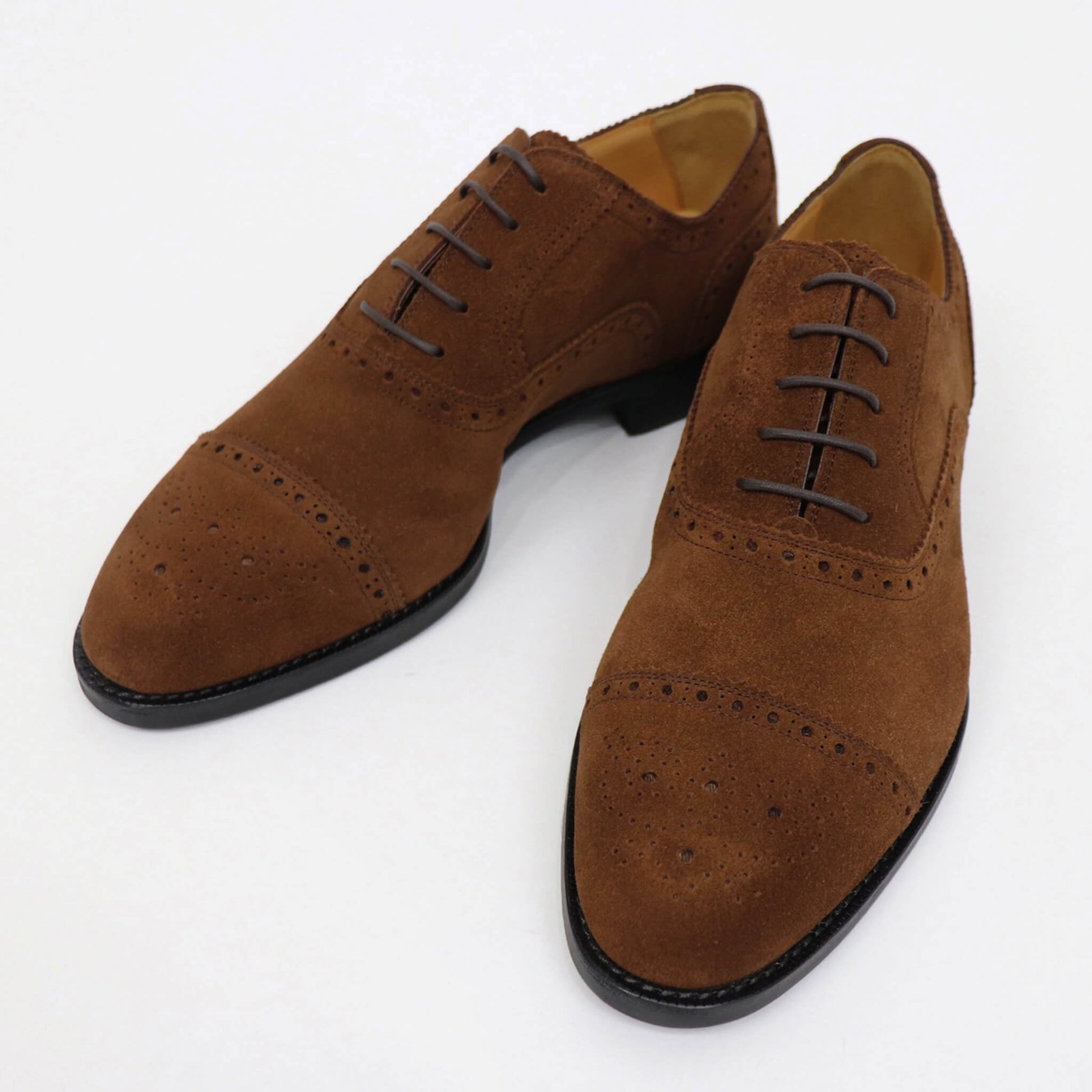 BRUNOでは今までに展開しておりませんでした、スエードのセミブローグシューズ。ジャケパンスタイルや素材感のあるスーツスタイル時に、ぜひスポーティーな装いお楽しみください。
