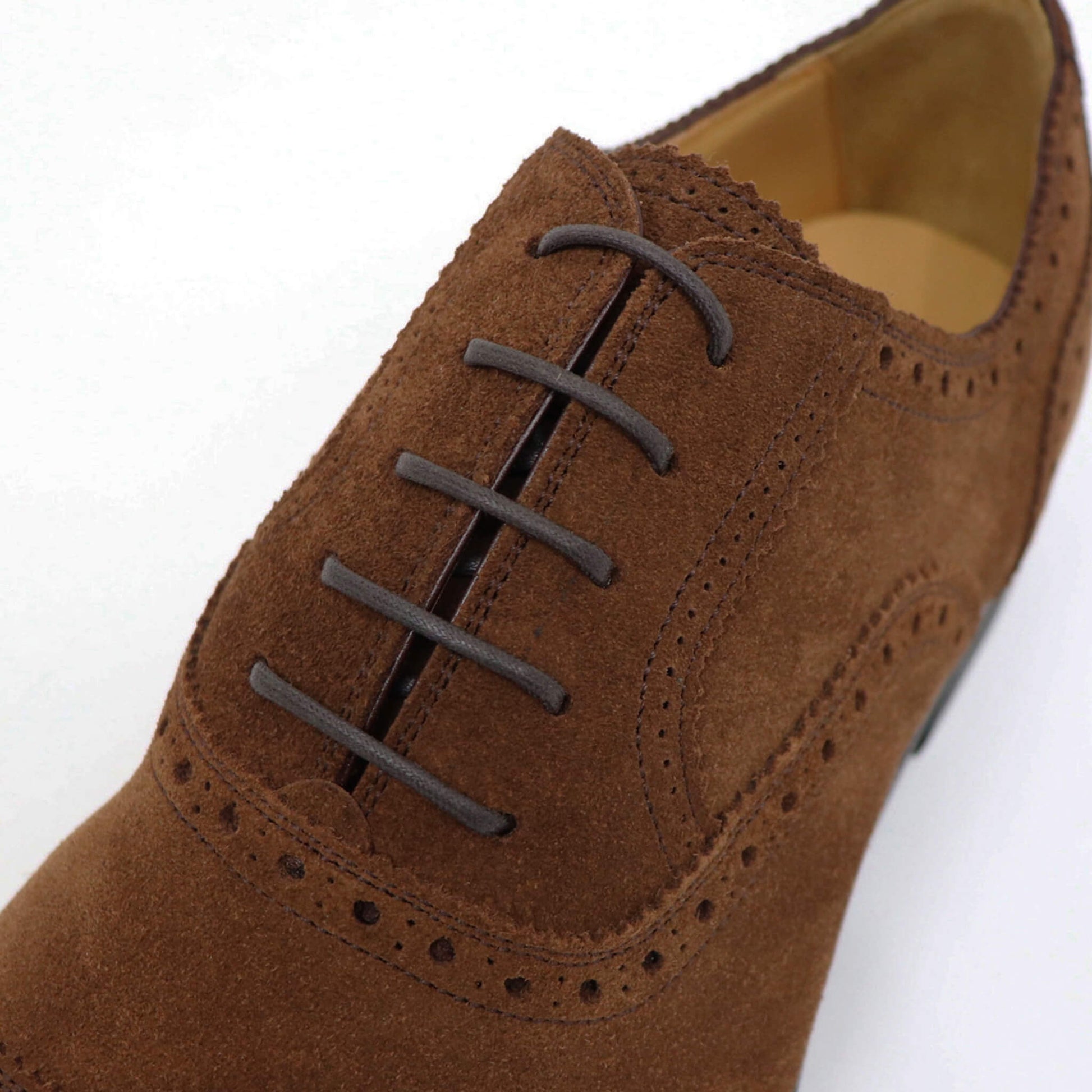 アッパーには英国老舗タンナーチャールズ・F・ステッド社のスエード”Super Buck(スーパーバック)”を採用。Super Buckは、現在一般的に出回っているカーフスエードでは最高峰と言われるスエードで、一般的なスエード革より毛足が短く、独特の肌触りと深みある色合いが最大の魅力です。英国を代表するスエード革として世界へと拡がり、英国の名だたる最高峰シューズブランドでも使用されています。