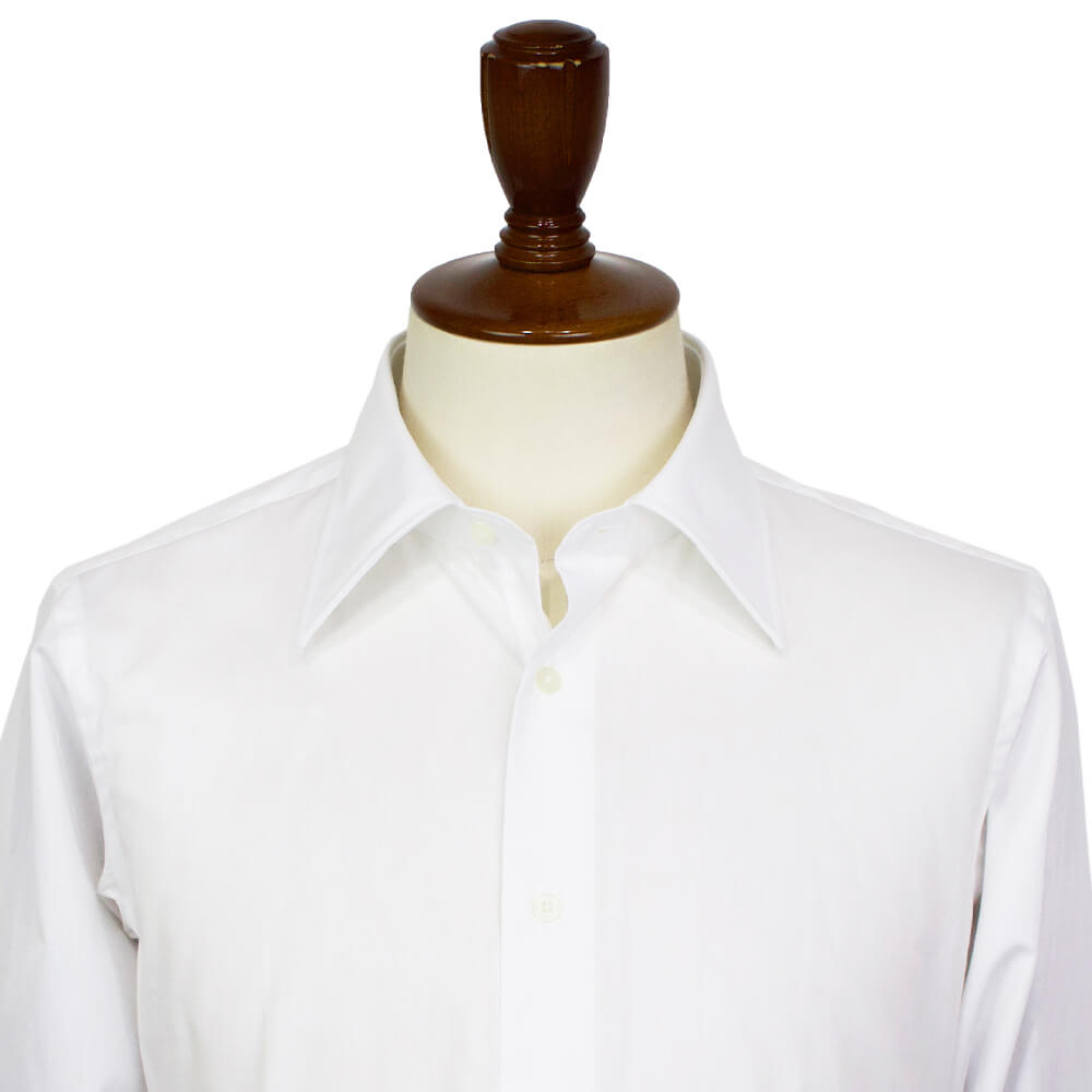 続いての人気ポイントは、襟型。クラシック回帰のトレンドをふまえた襟は、開きがやや狭いセミワイドカラーを採用しており、非常にエレガントで誠実な印象を与えてくれます。衿先までの長さにも拘り、ジャケットを着用した際の襟の収まりが良くなるように計算されています。