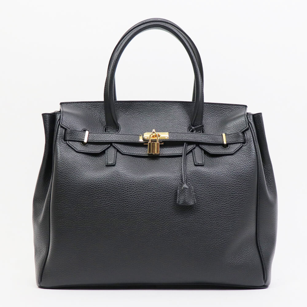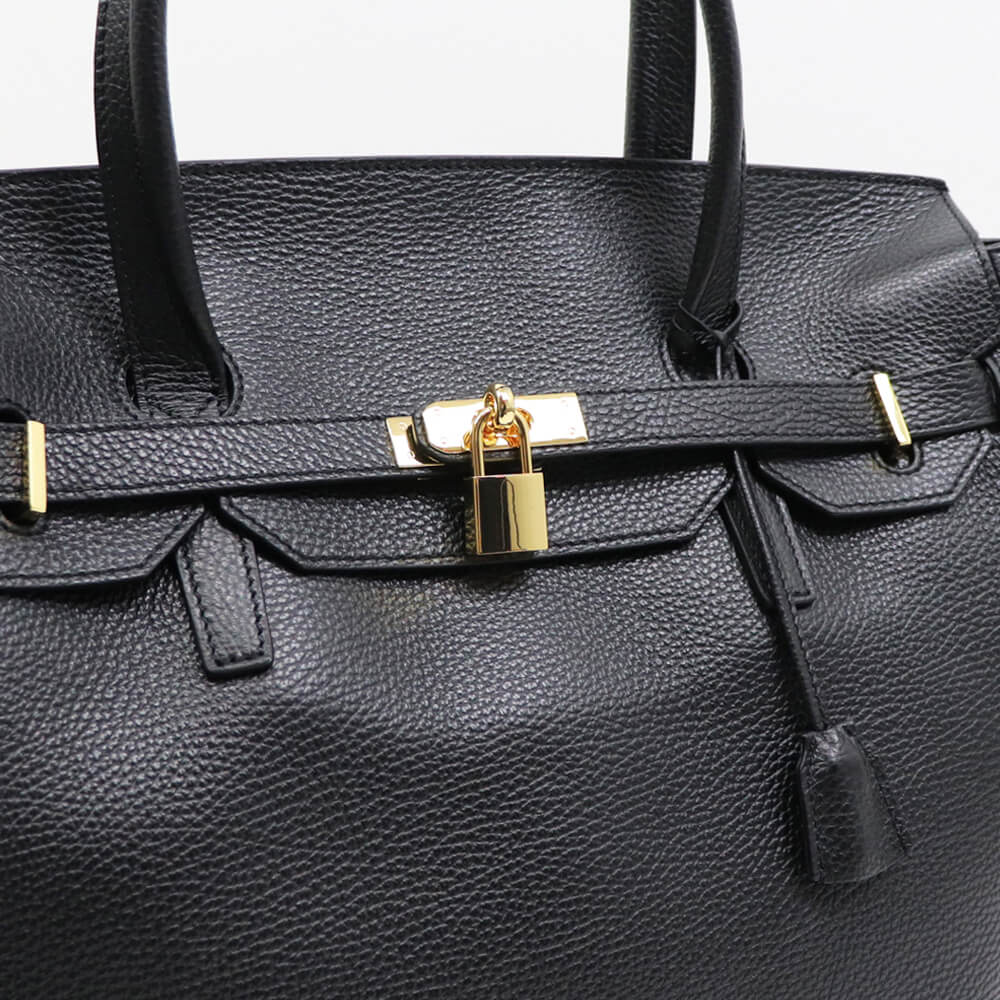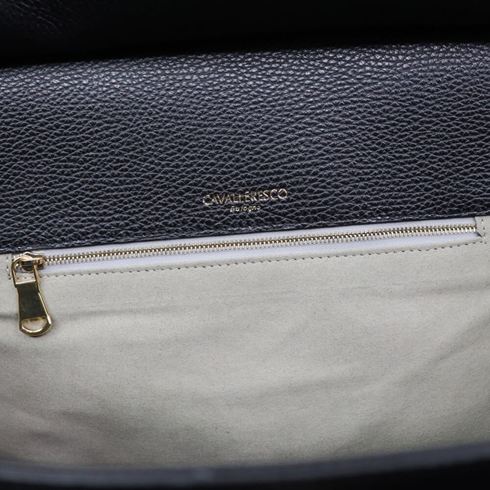 CAVALLERESCO(カヴァレレスコ)シュリンクレザー 被せ付き ボストンバッグ【ブラック×ゴールド】国内正規品