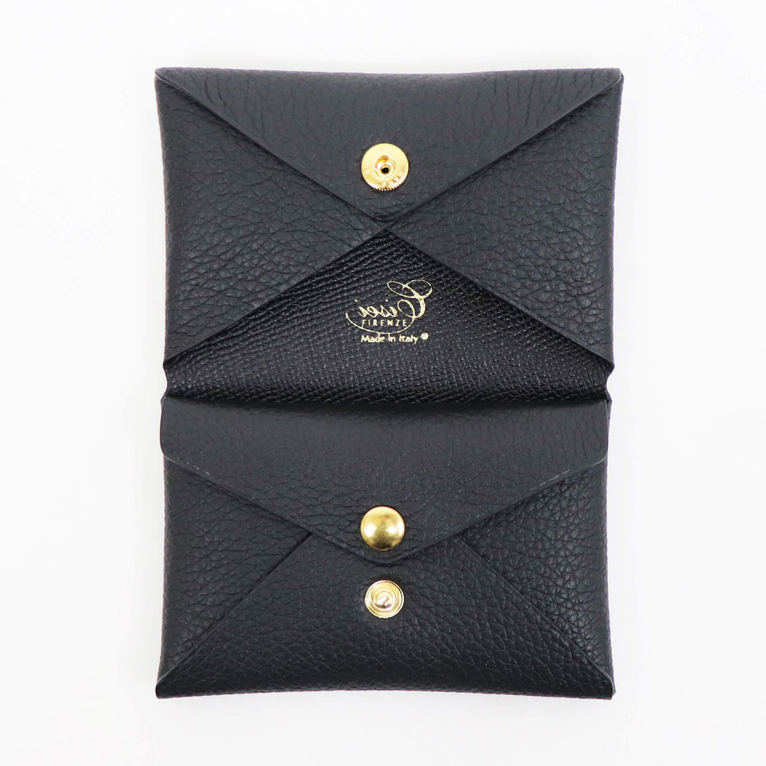 大きな一枚革を贅沢に使い、継ぎ目がなく革を折り畳んで成形された、ユニークなデザインのお財布です。