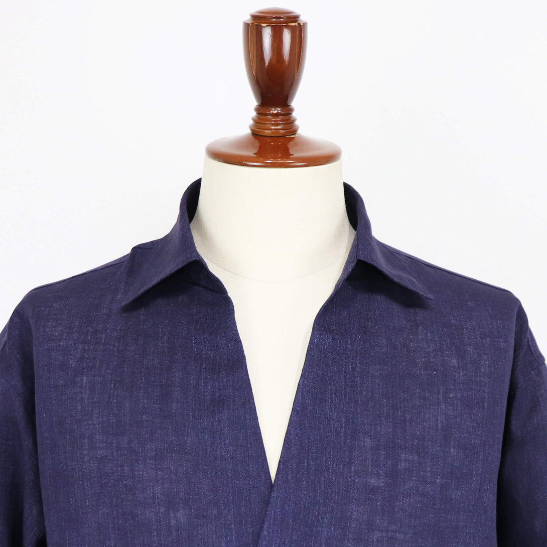 ブランドのコンセプトでもある「LUXURY RESORT」をまさしく表現したリゾート感溢れるプルオーバータイプのリネンシャツです。広い前開きのゆったりとしたバランスのボディはリラックスした着心地とサイジングを実現しています。